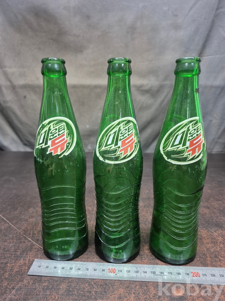 1980년대 마운틴 듀 355미리 음료수병 3점 일괄 7*7*25