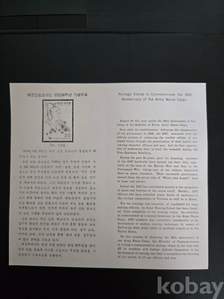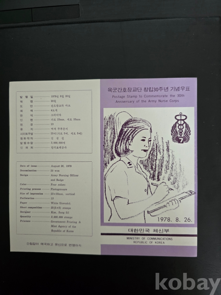 우표안내카드/78'8.26 육군간호장교단 창립30주년 접힘있슴