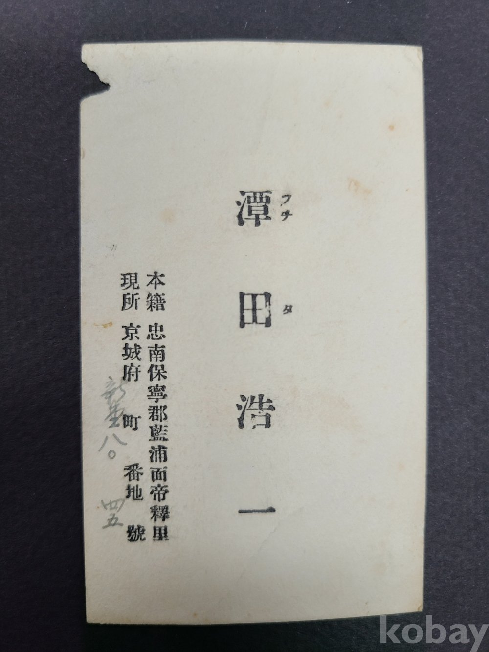 **** [일제강점기 명함]*創氏改名/충청남도 보령군 람포면 제석리 담전호일
