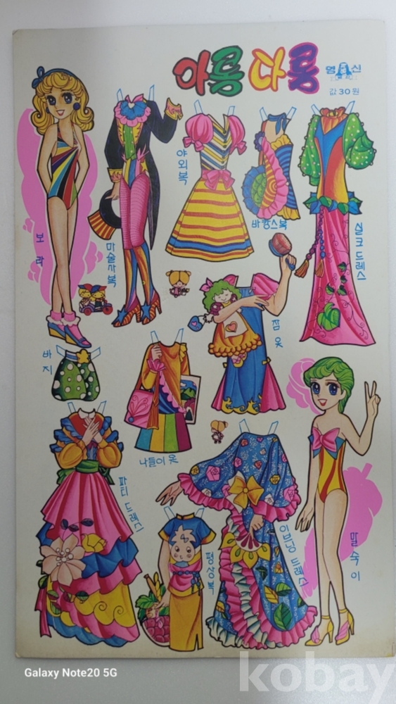 종이인형5종-2/딱지/만화영화/로보트 태권브이/마징가/건담/장난감
