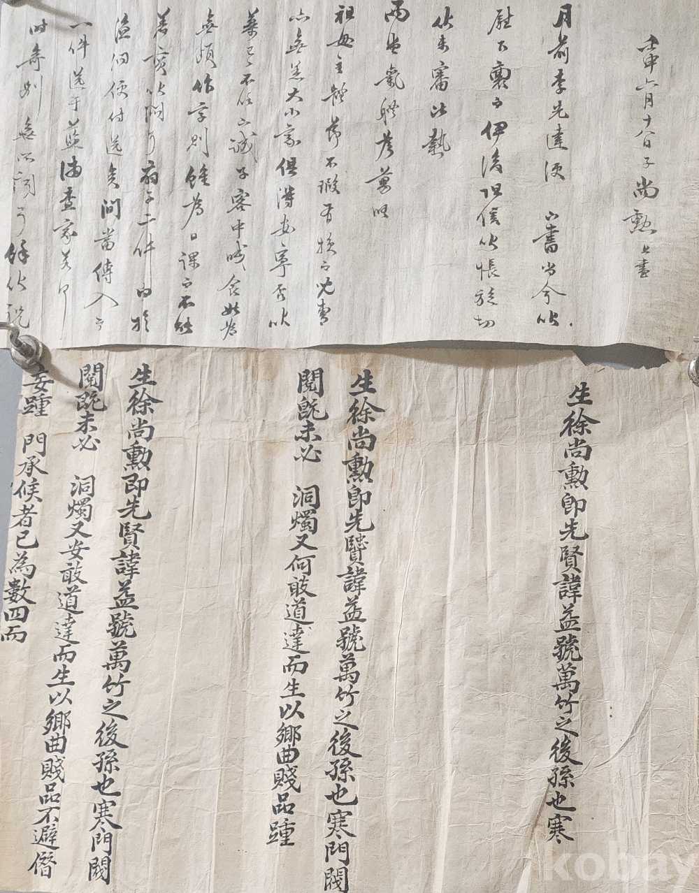 조선말 연대 갖춘 간찰 2장 서예품입니다,