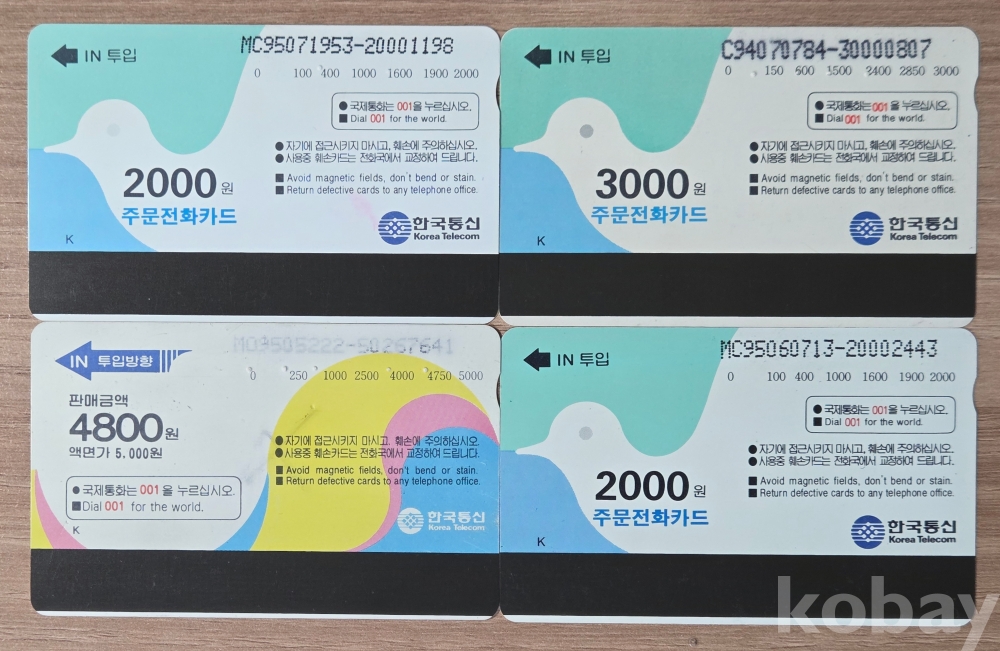 희귀 8-90년대 주문형 공중전화카드 4종 #50