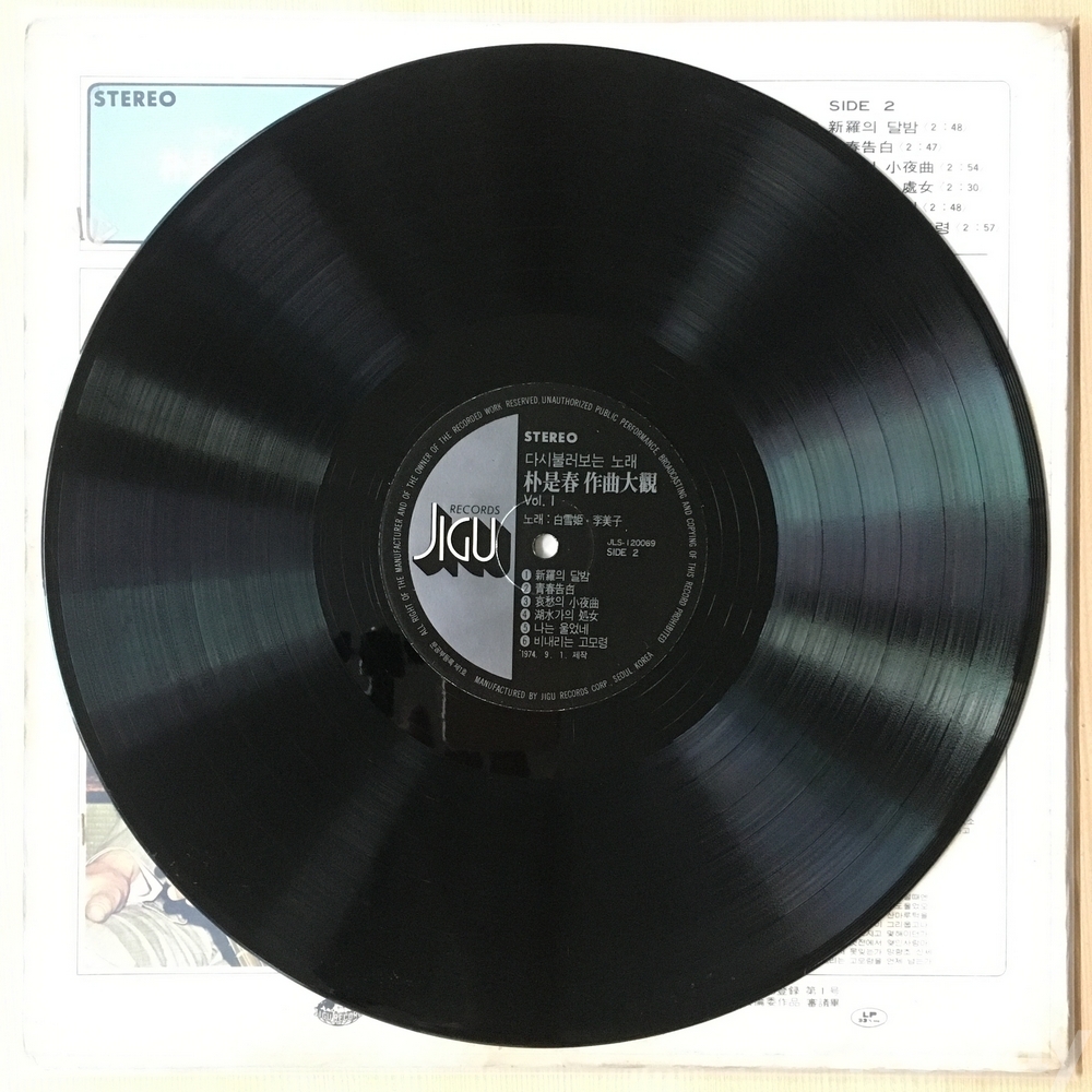 . 가요음반 대부분은 휘어짐이나 손상을 방지하기 위해 무지싱글자킷을 하나 더 사용하여 보관되었던 음반들입니다.