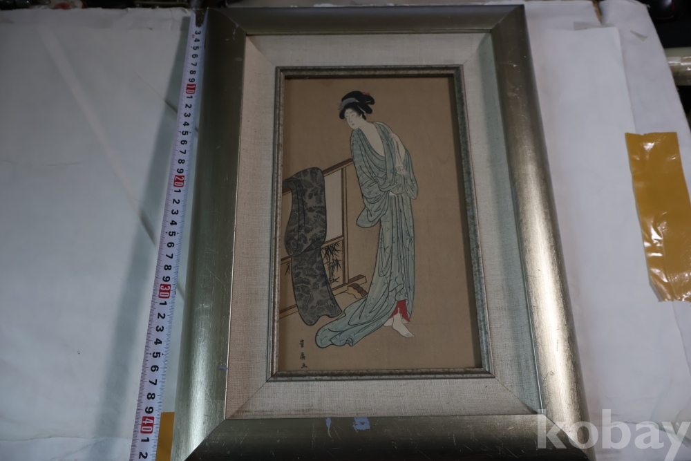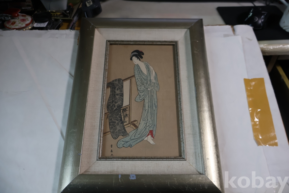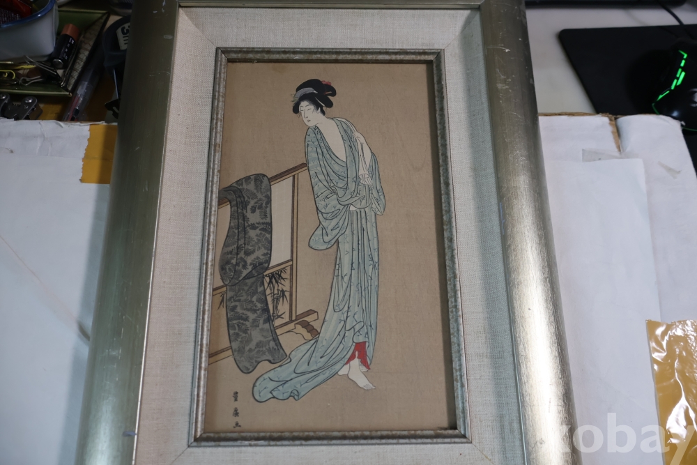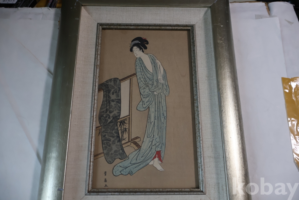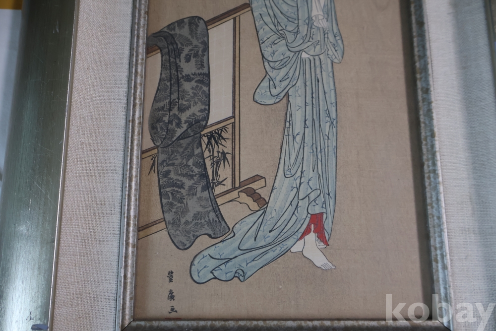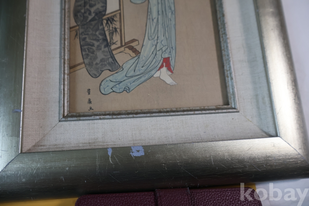 소화기의 목판화 구니히로 임니다 귀한 화가의 복각 목판화 임니다 고급 액자 처리 된 명품 임니다 액자는 세월의 칠 벗겨짐 이 보임니다 유리 역시 박물관 유리된 명물 임니다 일반 프린트 아님니다