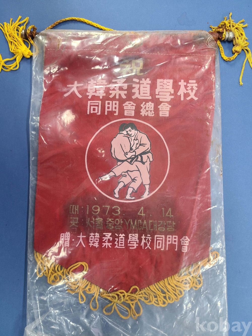 [스포츠] 1973년 대한유도학교 동문회총회 페넌트/상단 금속부분 녹슬음,얼룩흔적