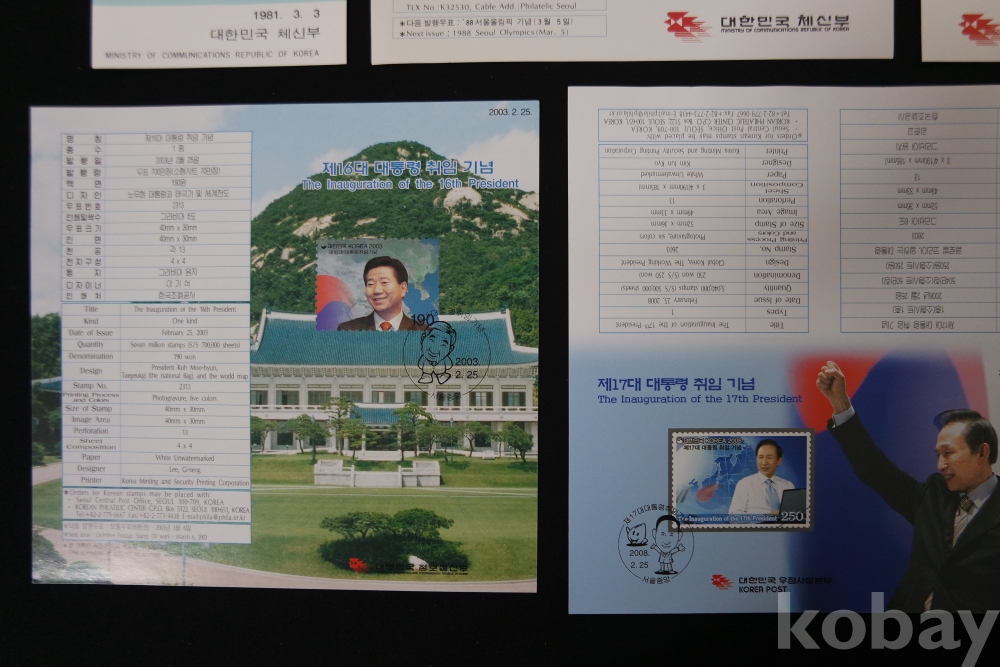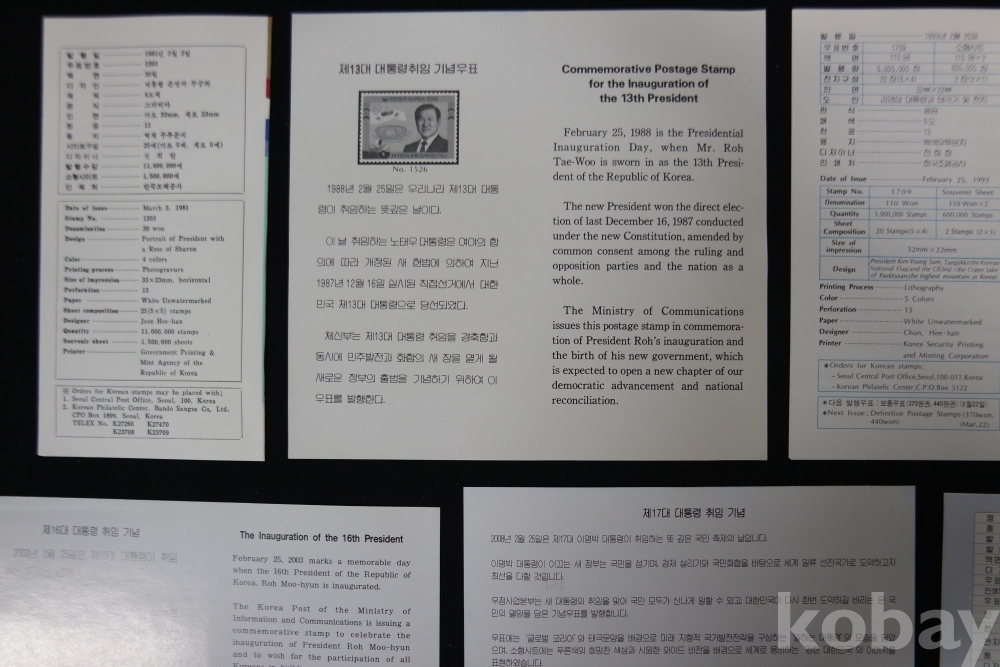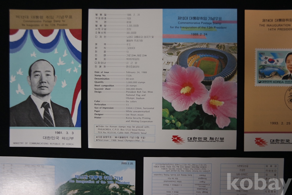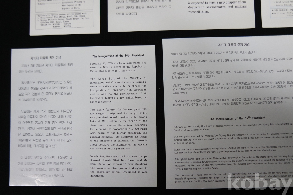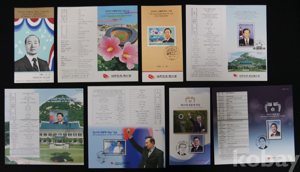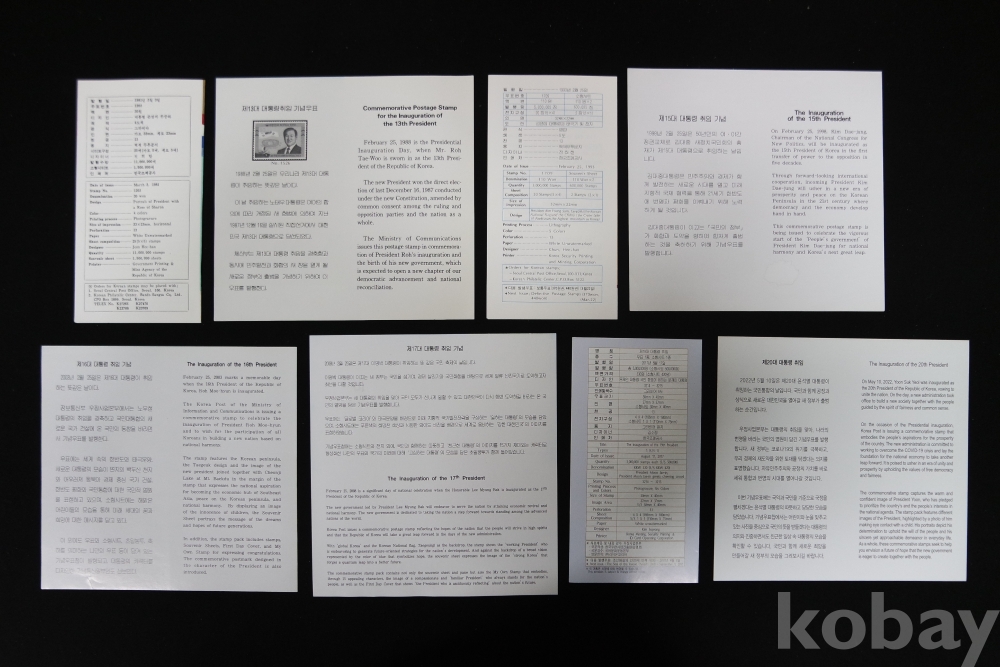 대통령 취임 안내카드(8매) / 제12,13,14,15,16,17,19,20대 대통령 취임기념 / 실제물품 사진 / 251106-2-19
