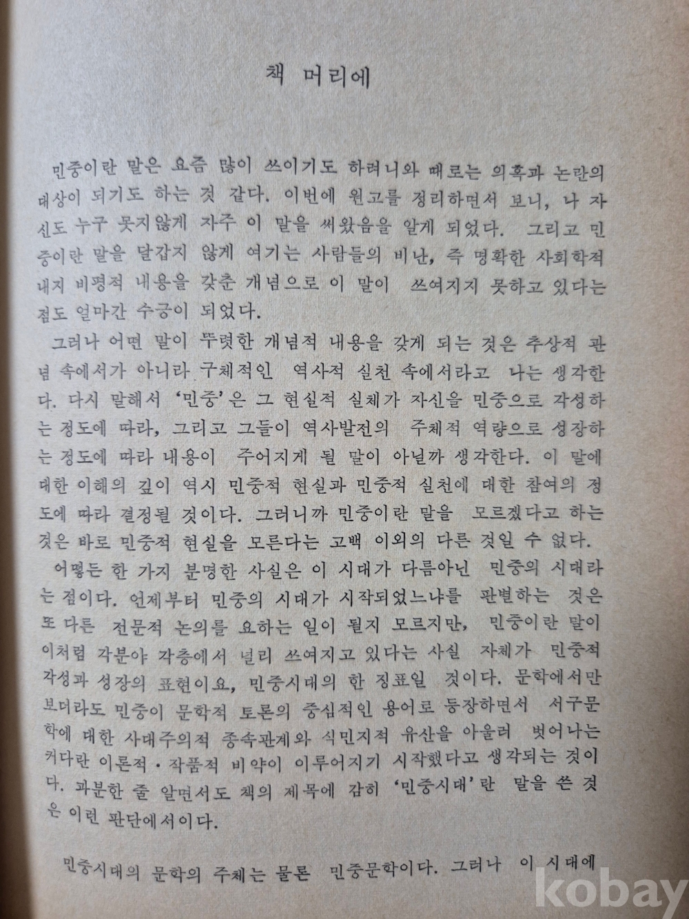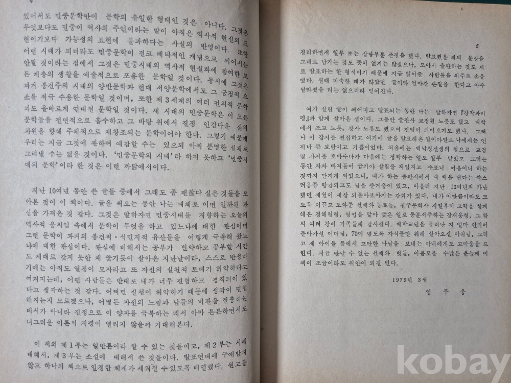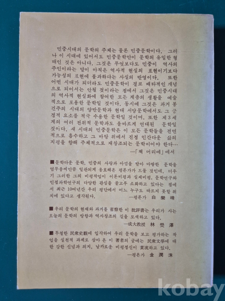 1979년 발간한 평론집 『民衆時代의 文學』
