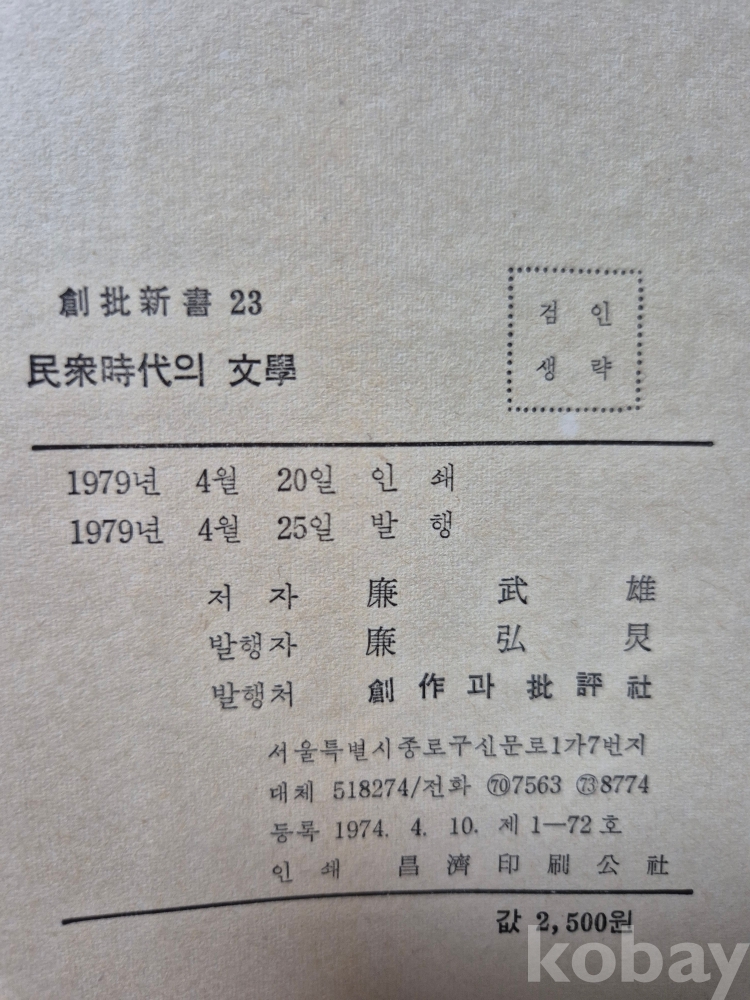 創作과批評社에서 '創批新書[23]'로 발행. 14.6X20.6X2.0cm