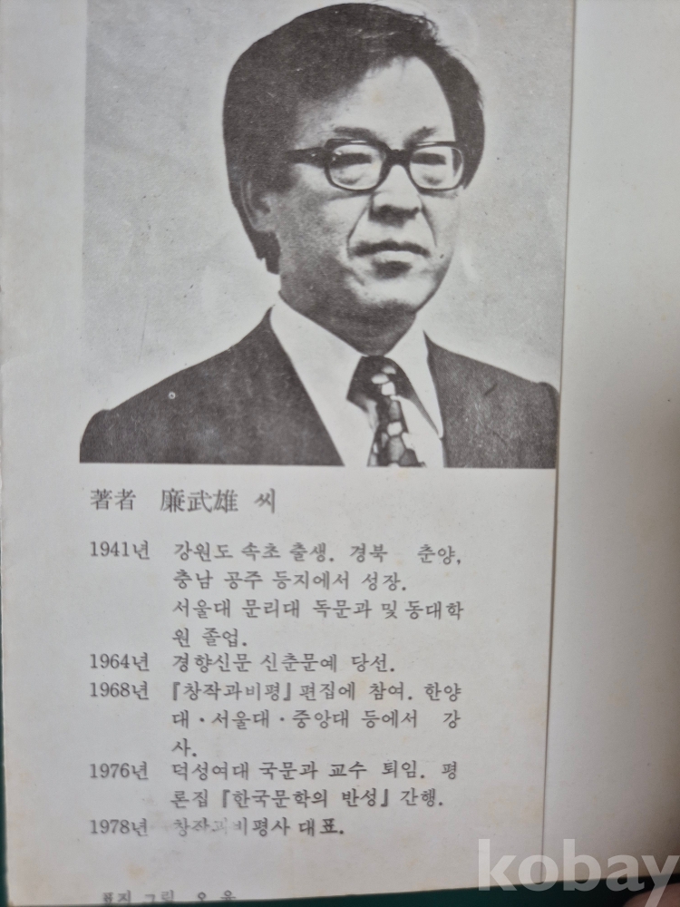 염무웅(강원특별자치도 속초: 1941) 평론집.