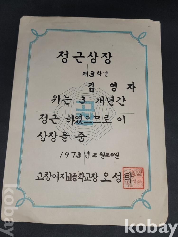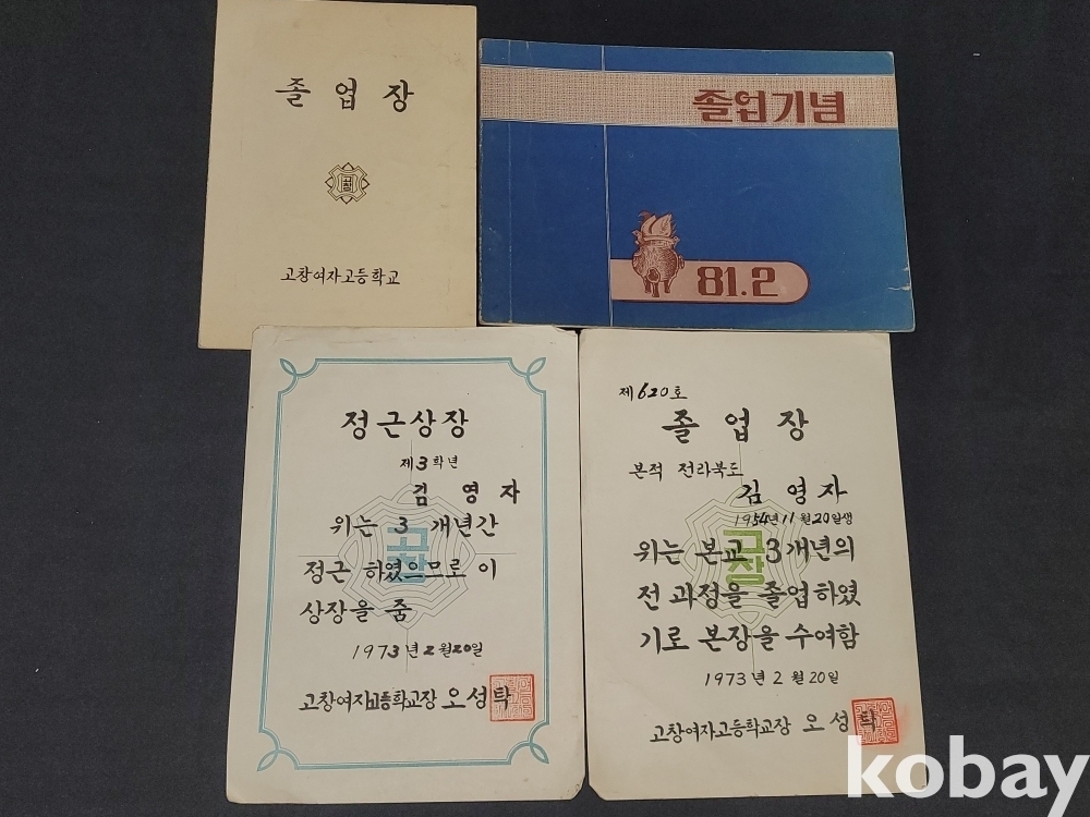 빈티지 세월 감이 느껴지는 1981년 용원국민학교 졸업앨범과 1973년 1976년 상장, 졸업장 등 4종 일괄입니다.