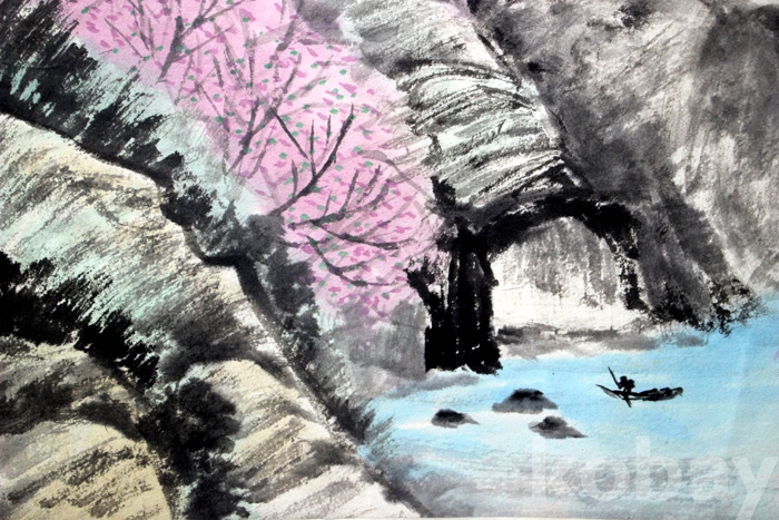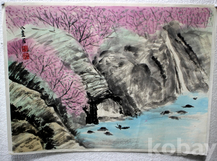 八豊(팔풍) 선생의 작품 - 꽃이 만발한 강가의 풍경