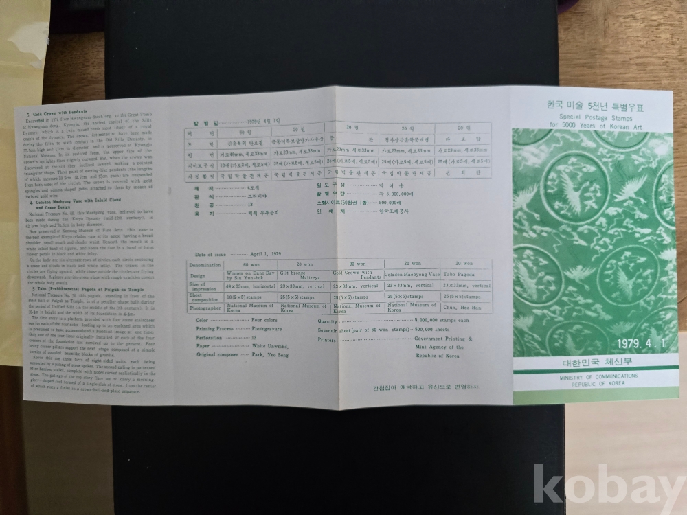 우표안내카드/79'4.1 한국미술오천년 접힘있슴