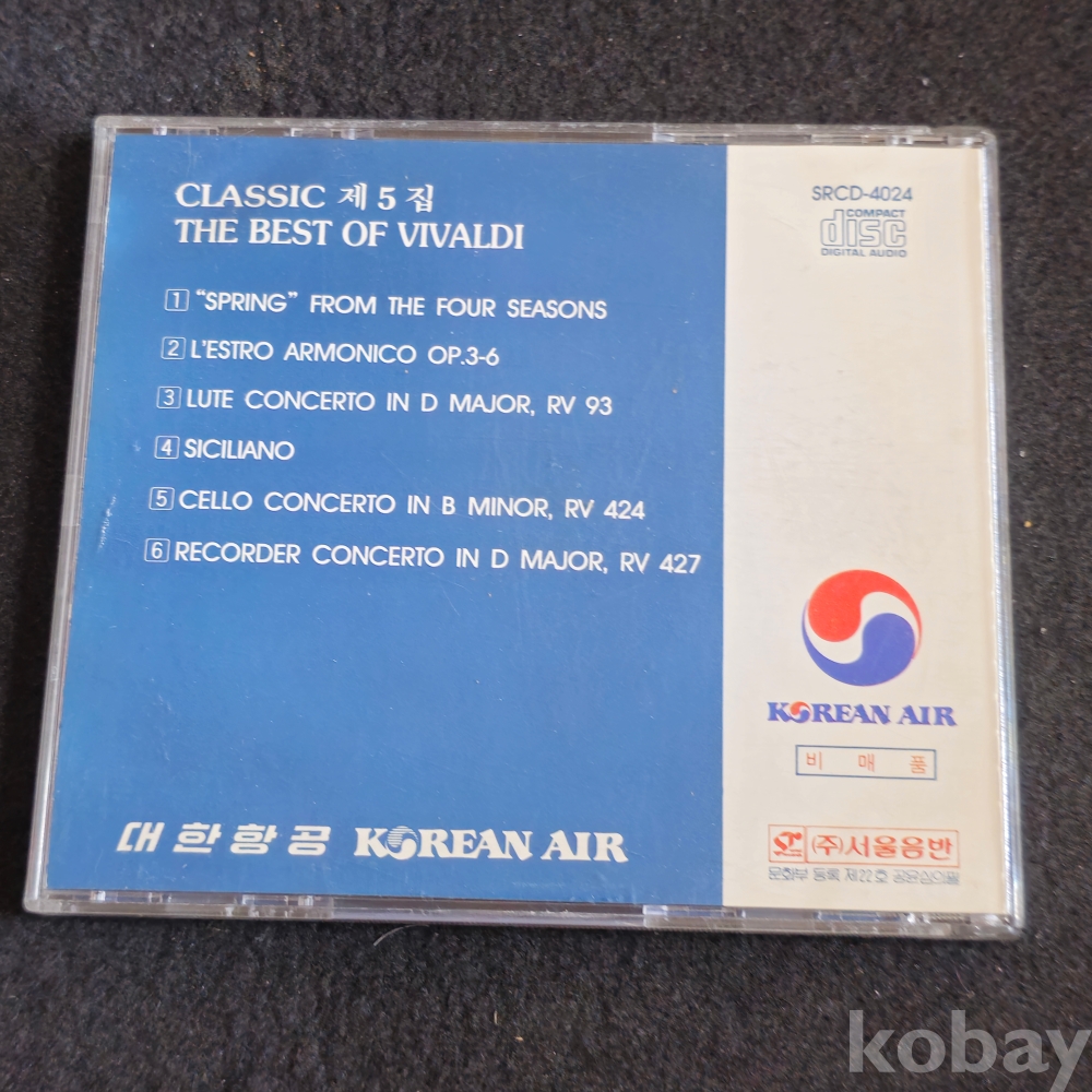 (천원경매)(((국내가요/POP/영화음악 CD))) KOREAN AIR (대한항공) CLASSIC 제 5집 - THE BEST OF VIVALDI CD (1992)