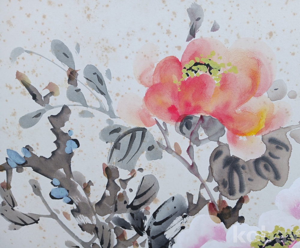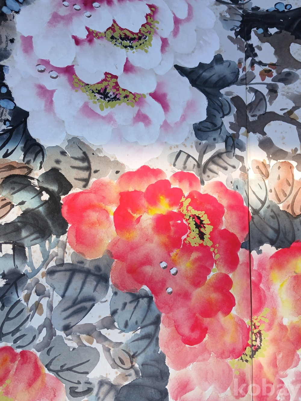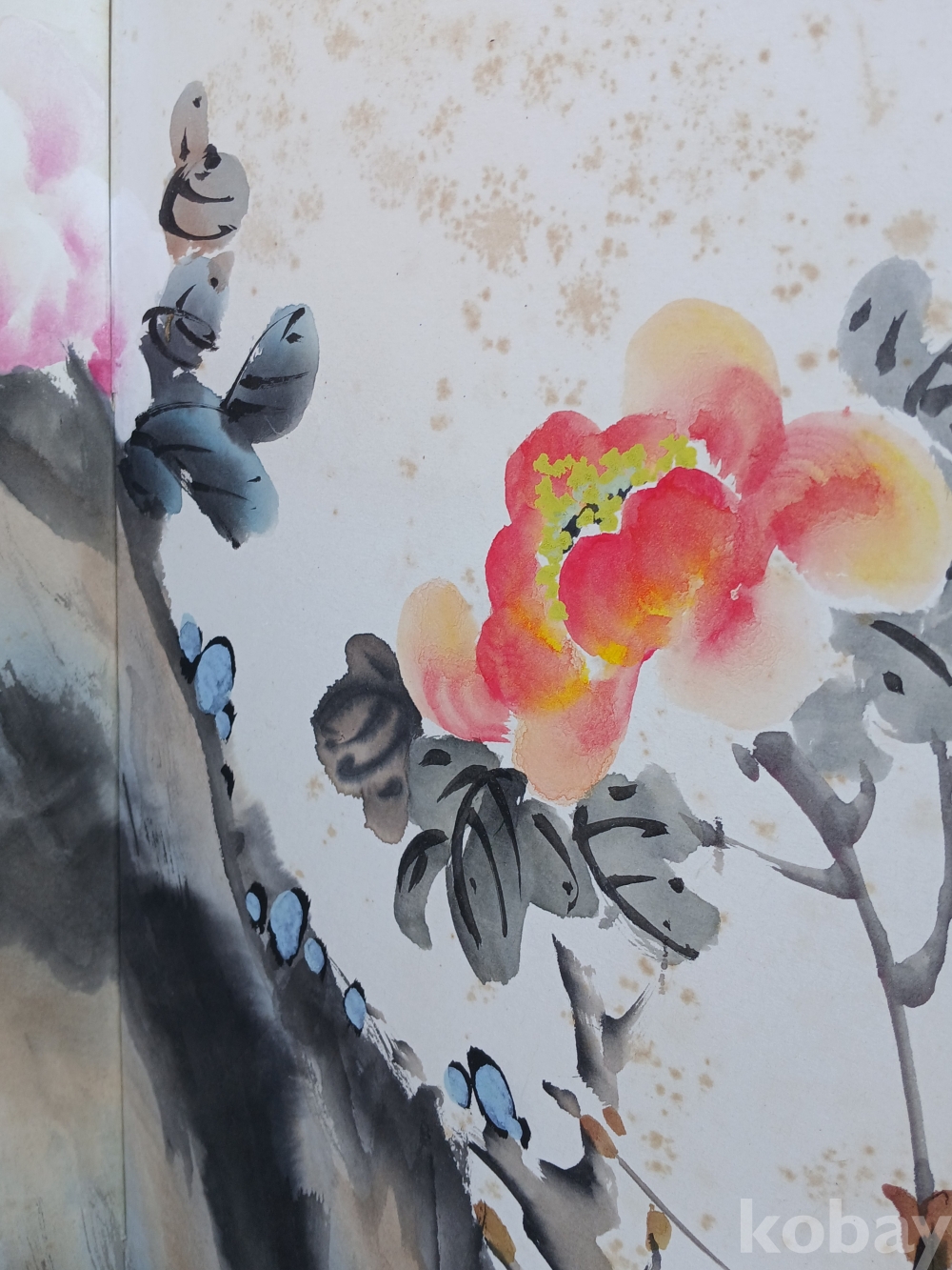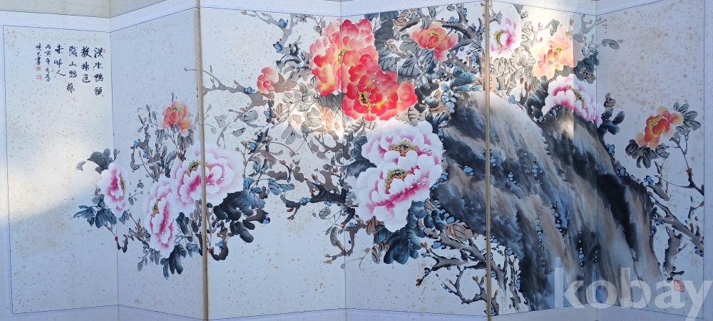 효천 김심곤 선생님의 굉장히 화려한 모란 일지 병풍 입니다.