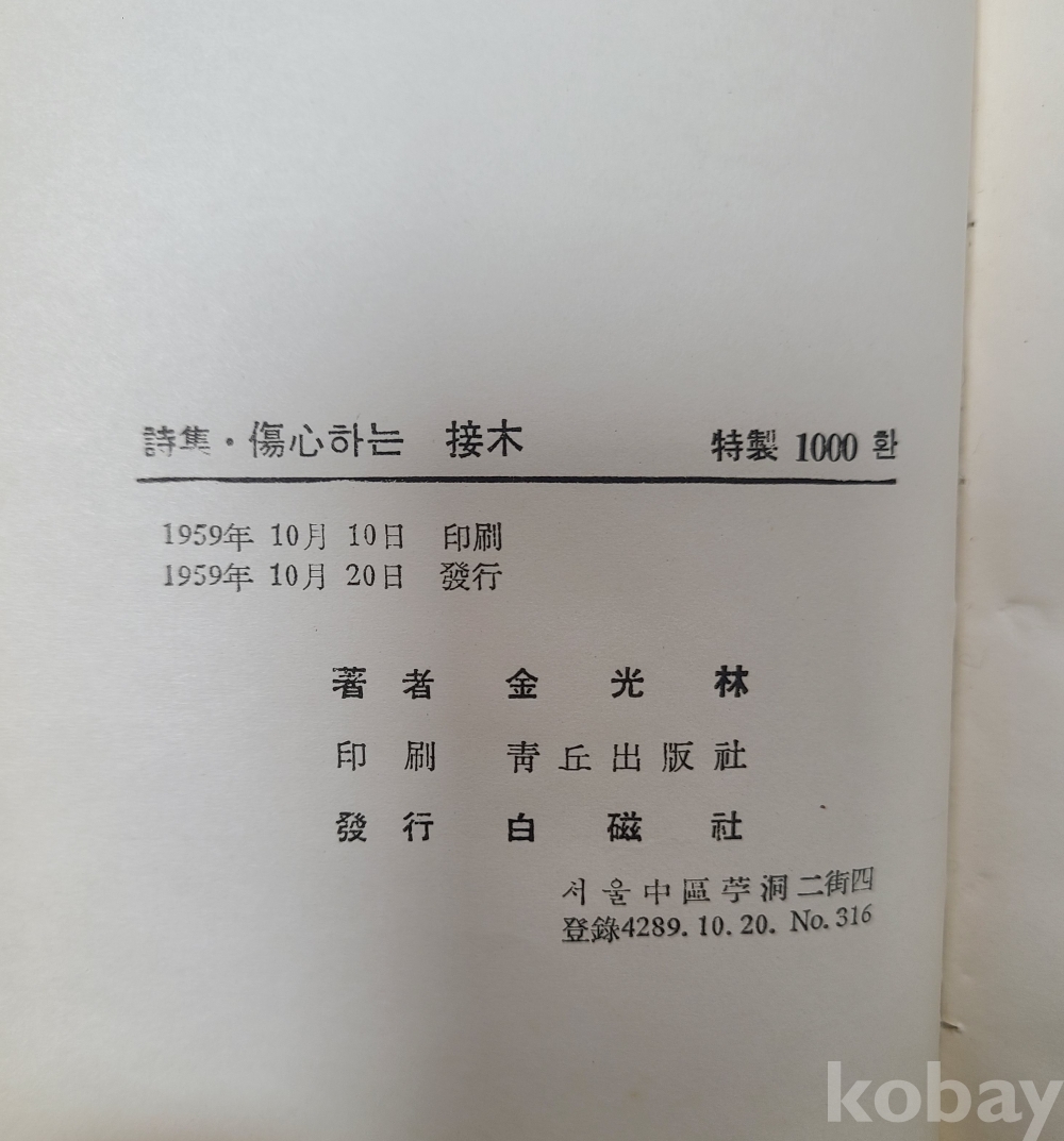 김광림 제1시집 <상심하는 접목> 희귀 초판본