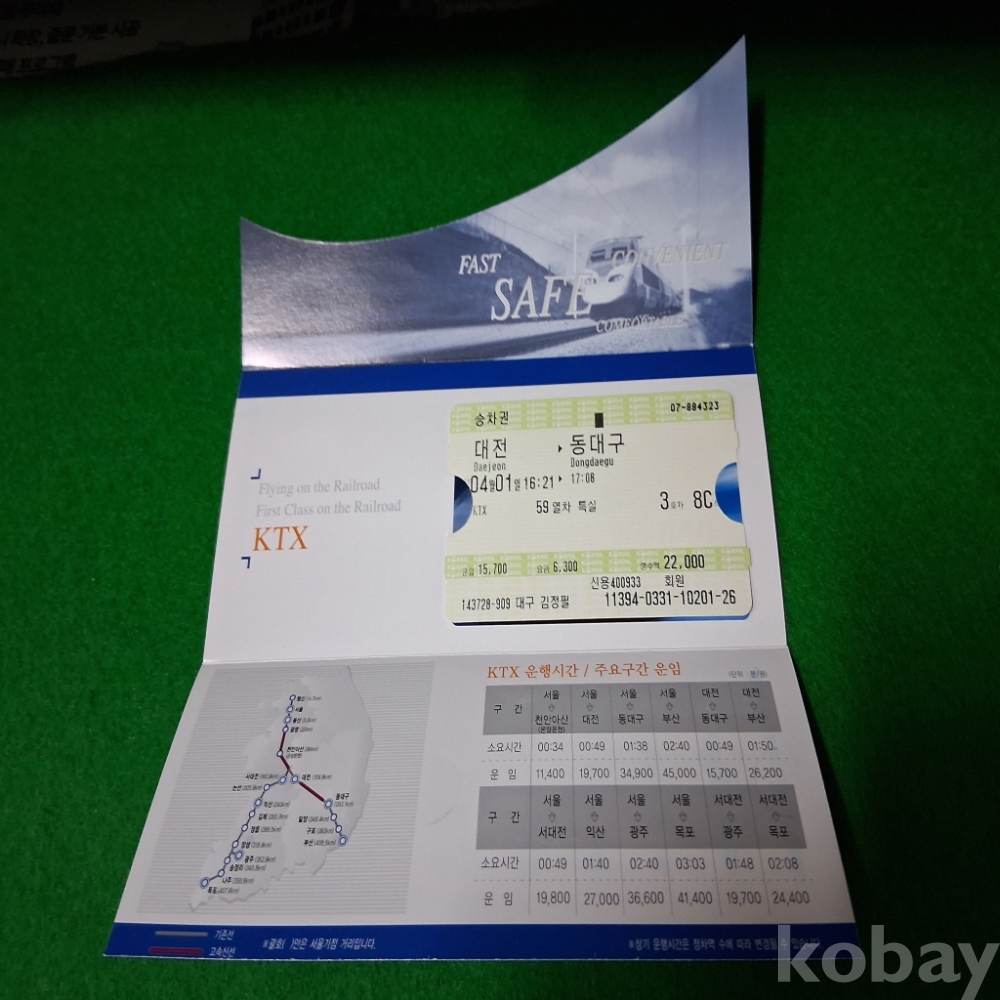 한국철도 KTX개통기념 특실승차권 사용제 대전----동대구
