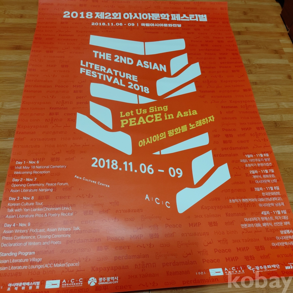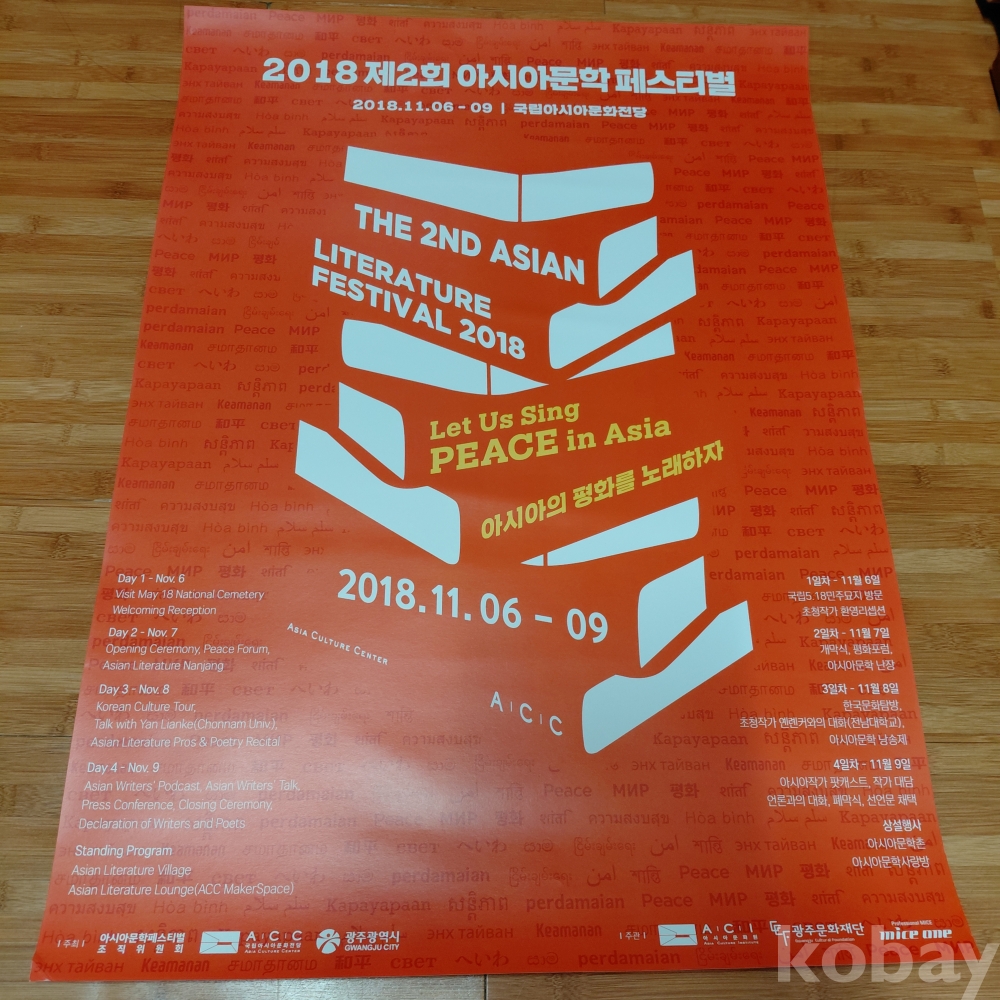 2018제2회 아시아 문학 페스티벌 홍보 대형포스터 (상단약간갈라진부분 사진참고)올려드립니다