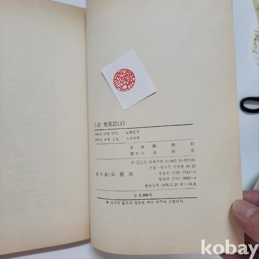 중급 : 표지없음/ 바램/ 필기 낙서/ 직인/ 갈라짐
