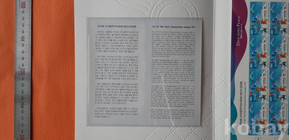 제18회 2019 광주FINA 세계수영선수권대회 전지(안내카드 포함) 우표첩 입니다.