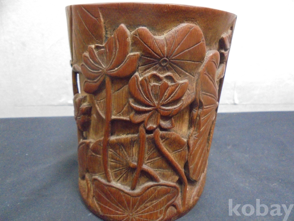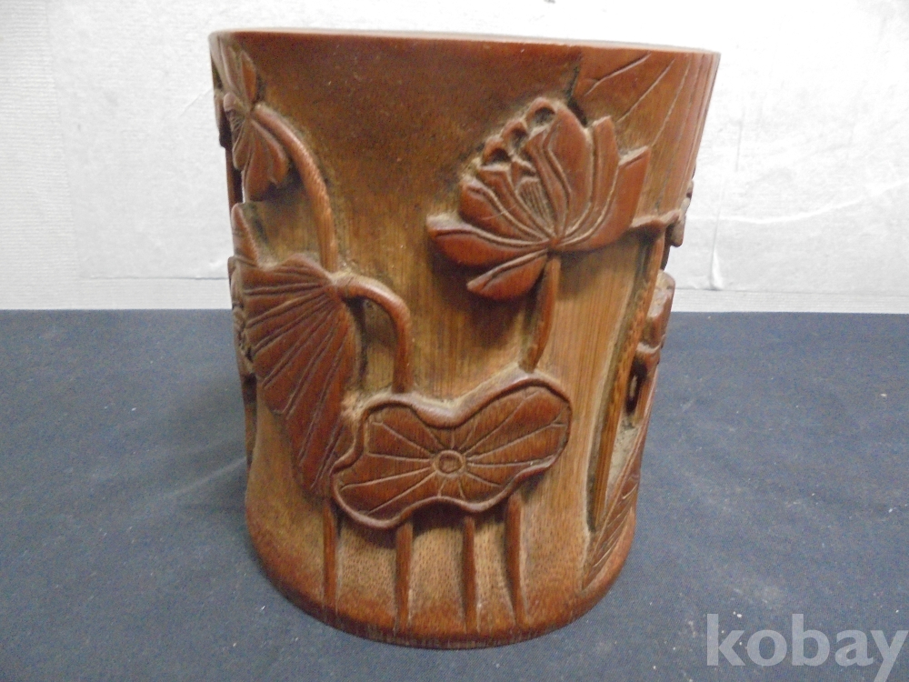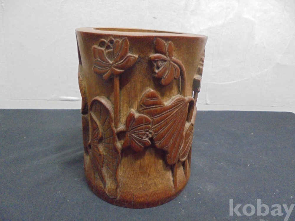 필통대나무제품 문방사우ㅡ1 ㅡ연꽃조각