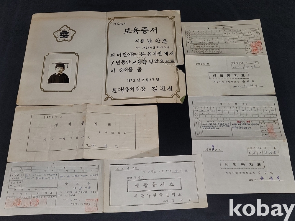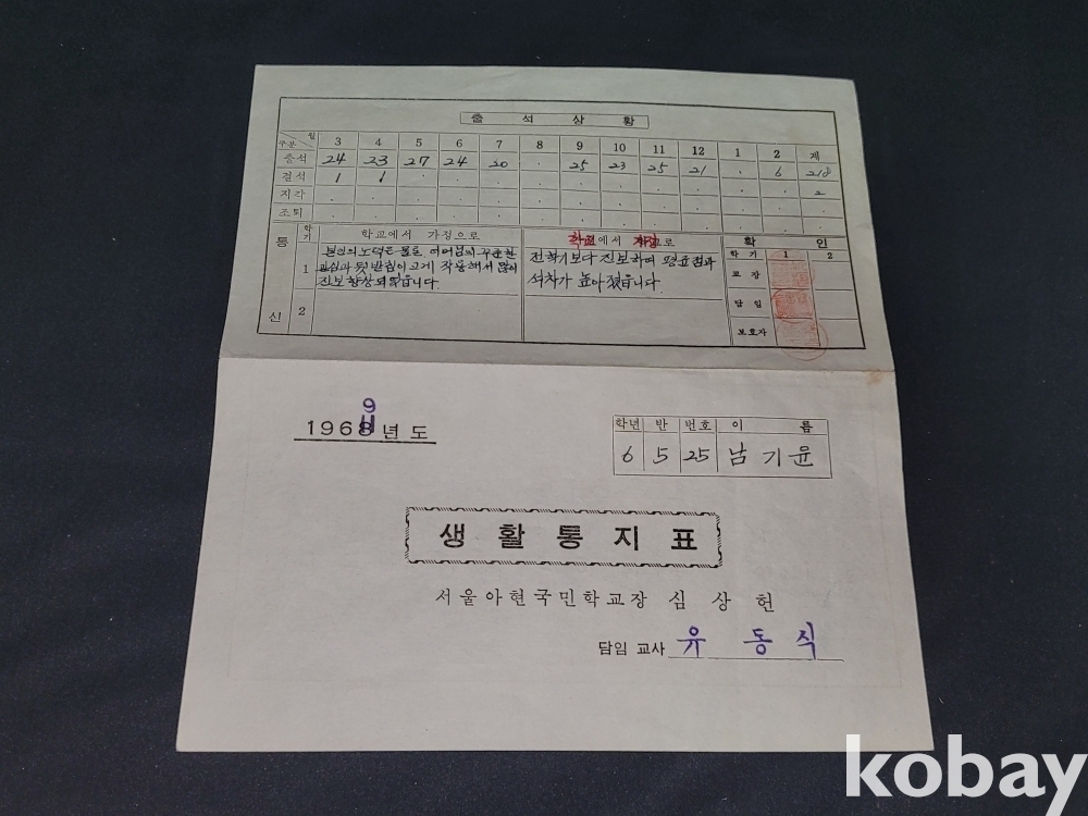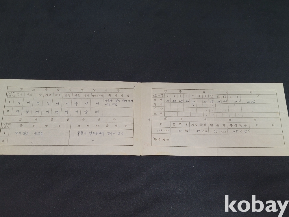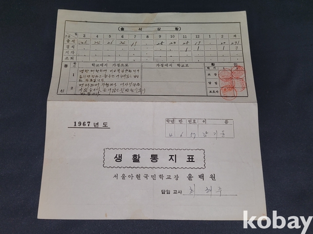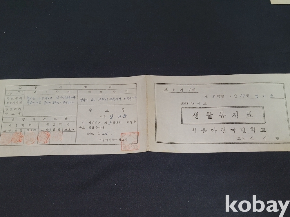빈티지 세월 감이 느껴지는 1967년, 1968년, 1969년, 1970년 생활통지서와 1972년 보육증서 등 5장 일괄입니다.
