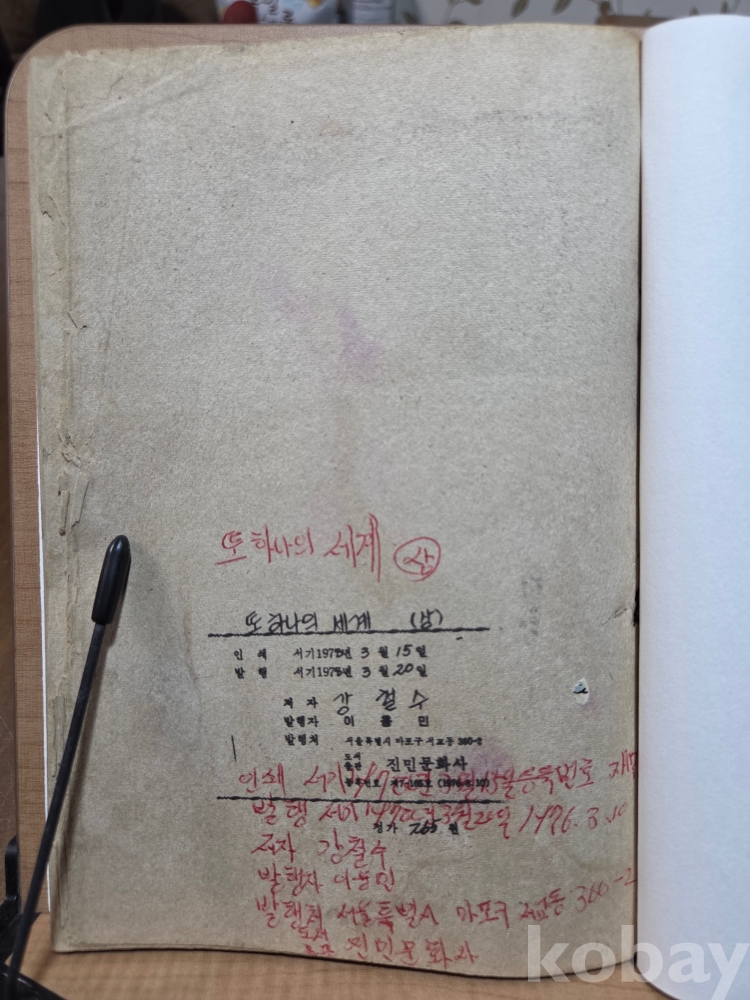 강철수 <또 하나의 세계> 상권, 하권_1978년 3월 23일 완결본입니다.