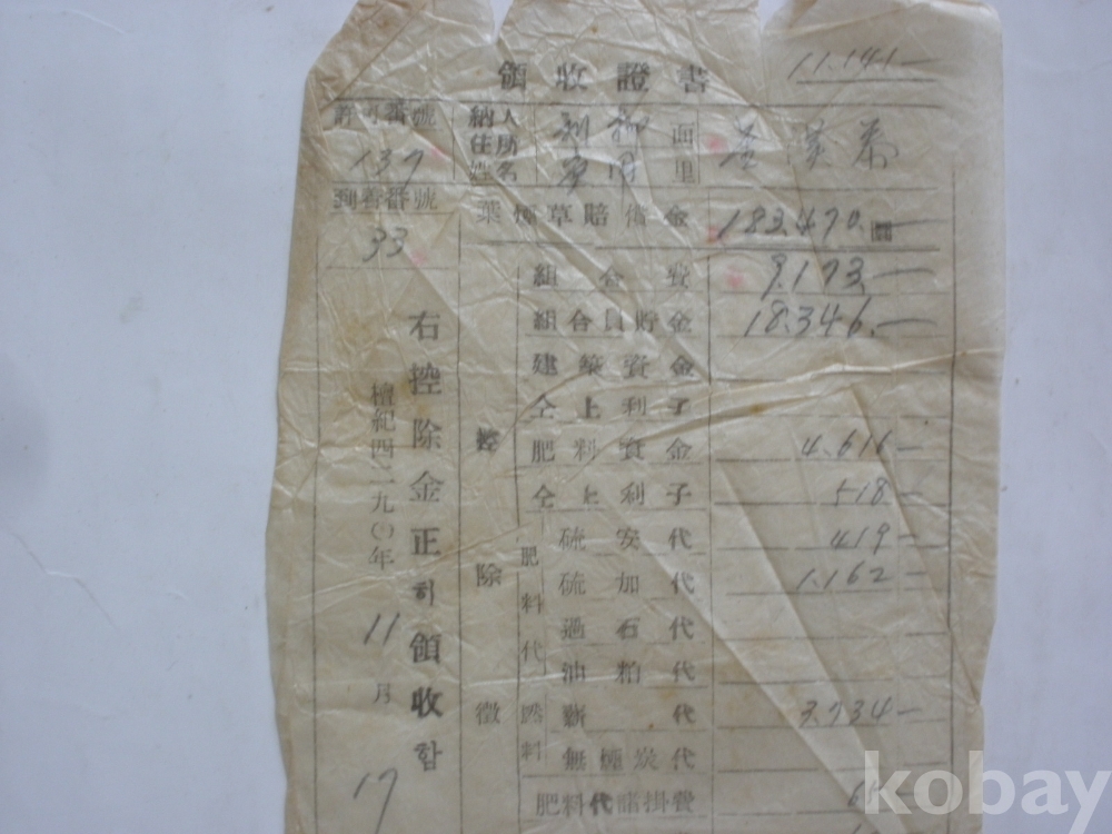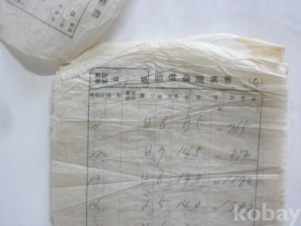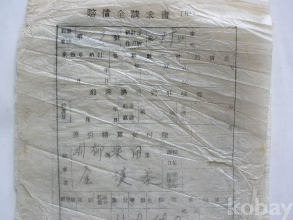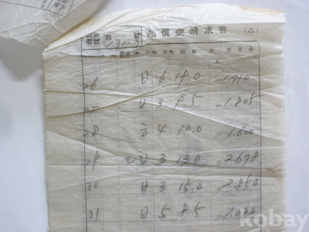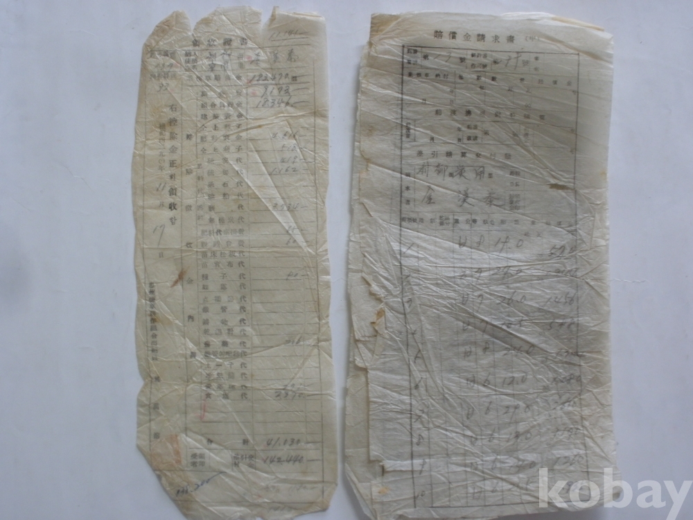 배상금 청구서 및 영수증서 (1961년, 충주연초경작조합)
