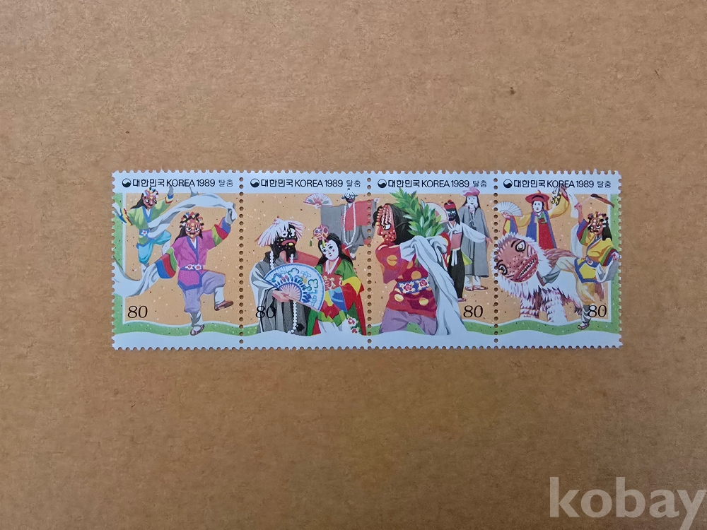 미사용 명판 우표 89'2.25 민속시리즈 6집 탈춤