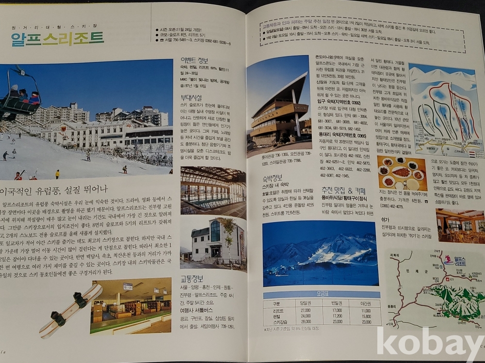 빈티지 1996년 추정 칼라(CALLA) 12월호 별책부록 스키장 관련 내용이 담긴 잡지입니다.