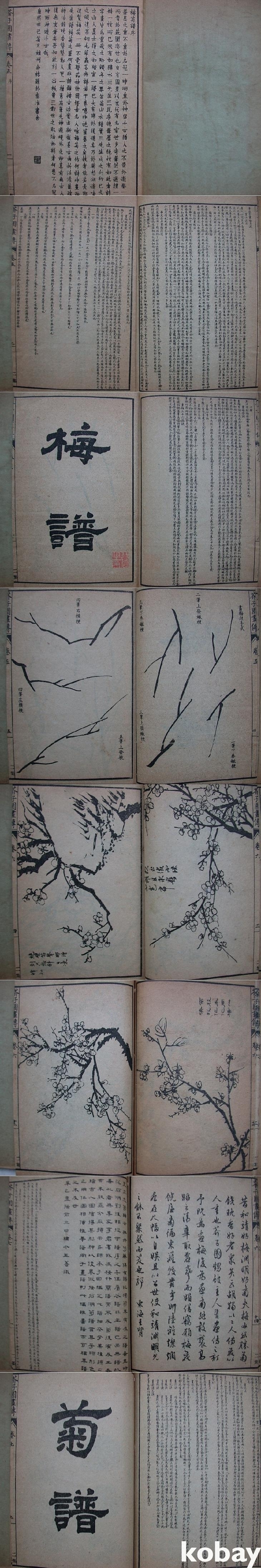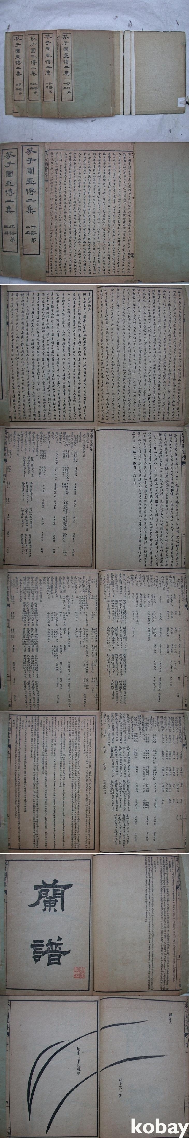 ▒ 13.5×20.3cm. 책마다 가는 실로 4번씩 묶은 4책들을 두꺼운 판지로 두른 서갑에 싸여 있고 제첨이 있다. 난보 제1책 서문2장+1권16장+2권9장, 죽보 제2책 3권15장+4권14장, 매보 제3책 5권14장+6권14장+7권11장, 국보 제4책 8권13장+9권22장.