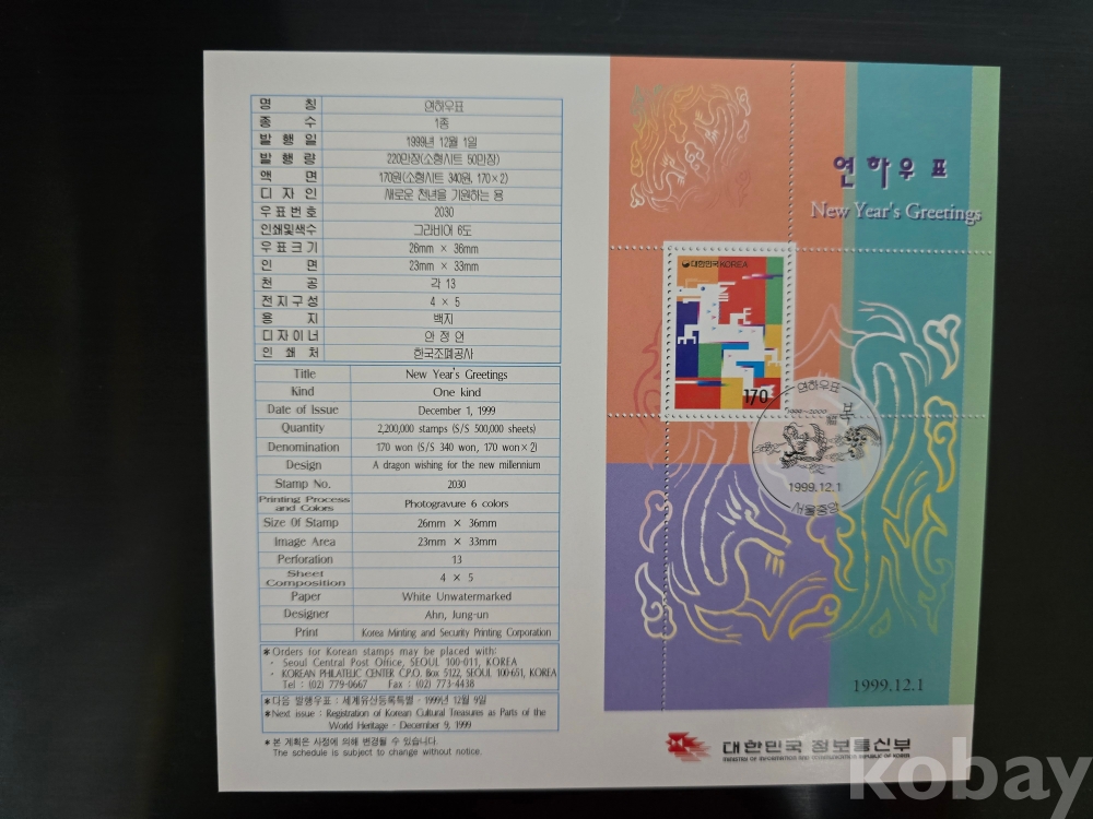 우표안내카드/99'12.1 연하
