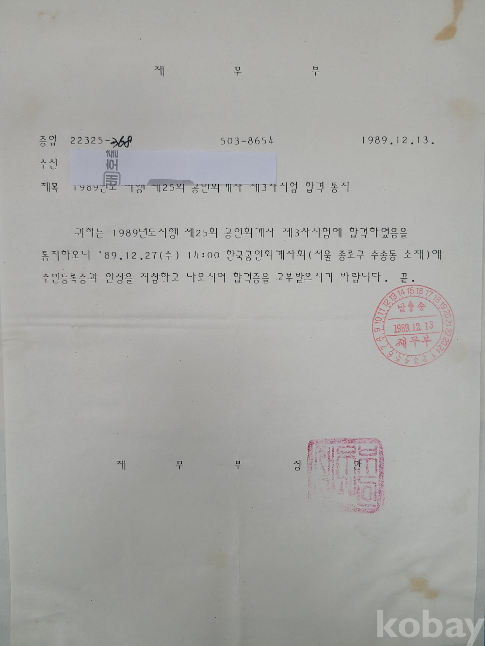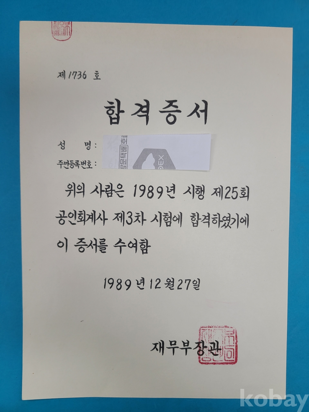 **** [공인회계사자료] 합격증서, 경축경보, 입성장, 대학주보, 응시표 등