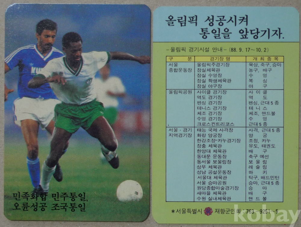 1988년 서울올림픽 경기 시설 안내 포켓 카드