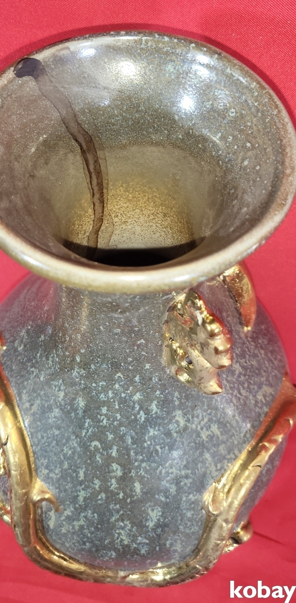추부(樞府) 관지있는 녹유(綠釉) 금채 첩화(貼花) 용(龍) 문양 양이 병입니다,