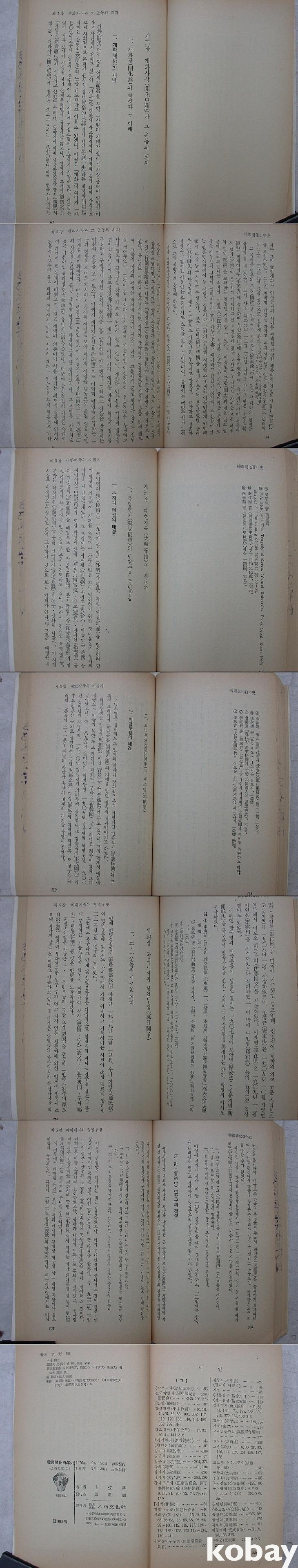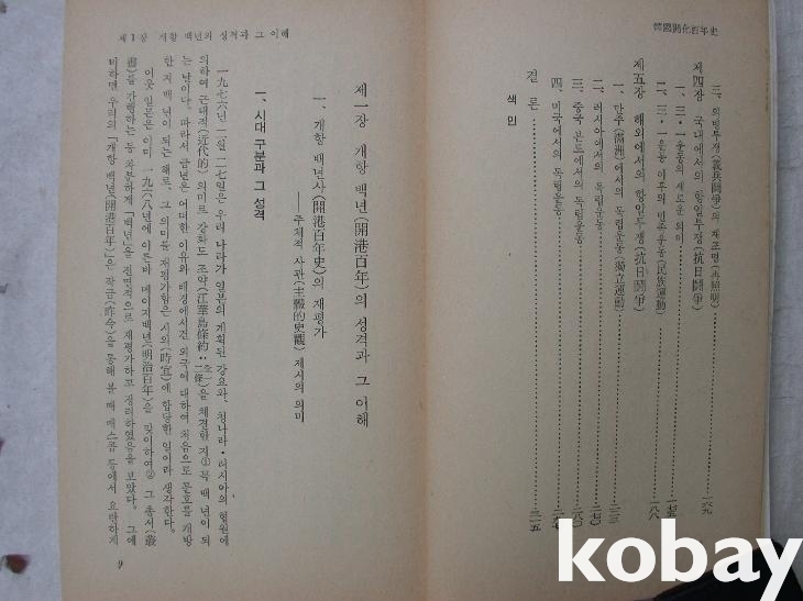 <머리말>에서 개항 백년을 맞아 책을 낸다고 하였다. 개항 이후의 역사를 5장으로 나누어 서술하였다. 장 끝에 미주가 따로 있다.