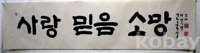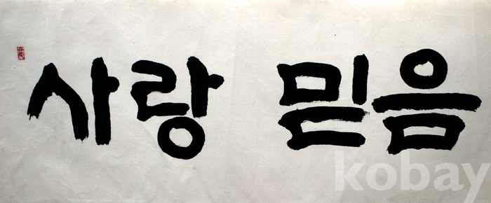 신미술대전 심사위원을 지낸 小谿(소계) 양규택의 한글서예 - 믿음 소망 사랑