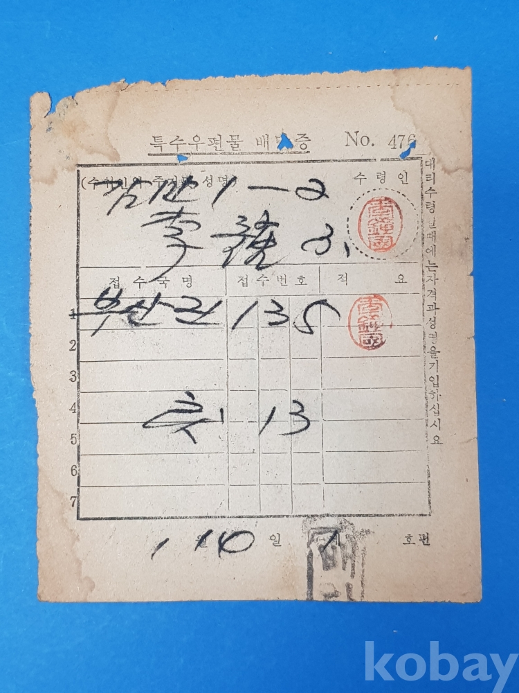 **** 우표,엽서,실체봉피류는 배송비를 선결제 하시면 등기우편으로 보내 드립니다