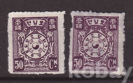 - 미사용 미군정기 해방조선기념 태극문장 50전 우표 2종 모음