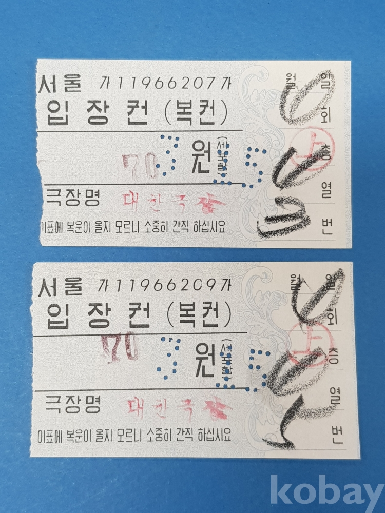 **** 영화자료/대한극장 입장권 2장