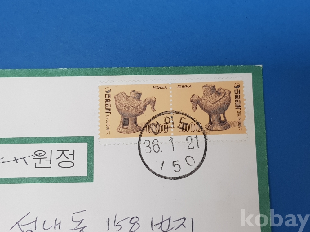 **** 86년 요판보통 1000원 오리토기 2매첩부 통화등기 실체