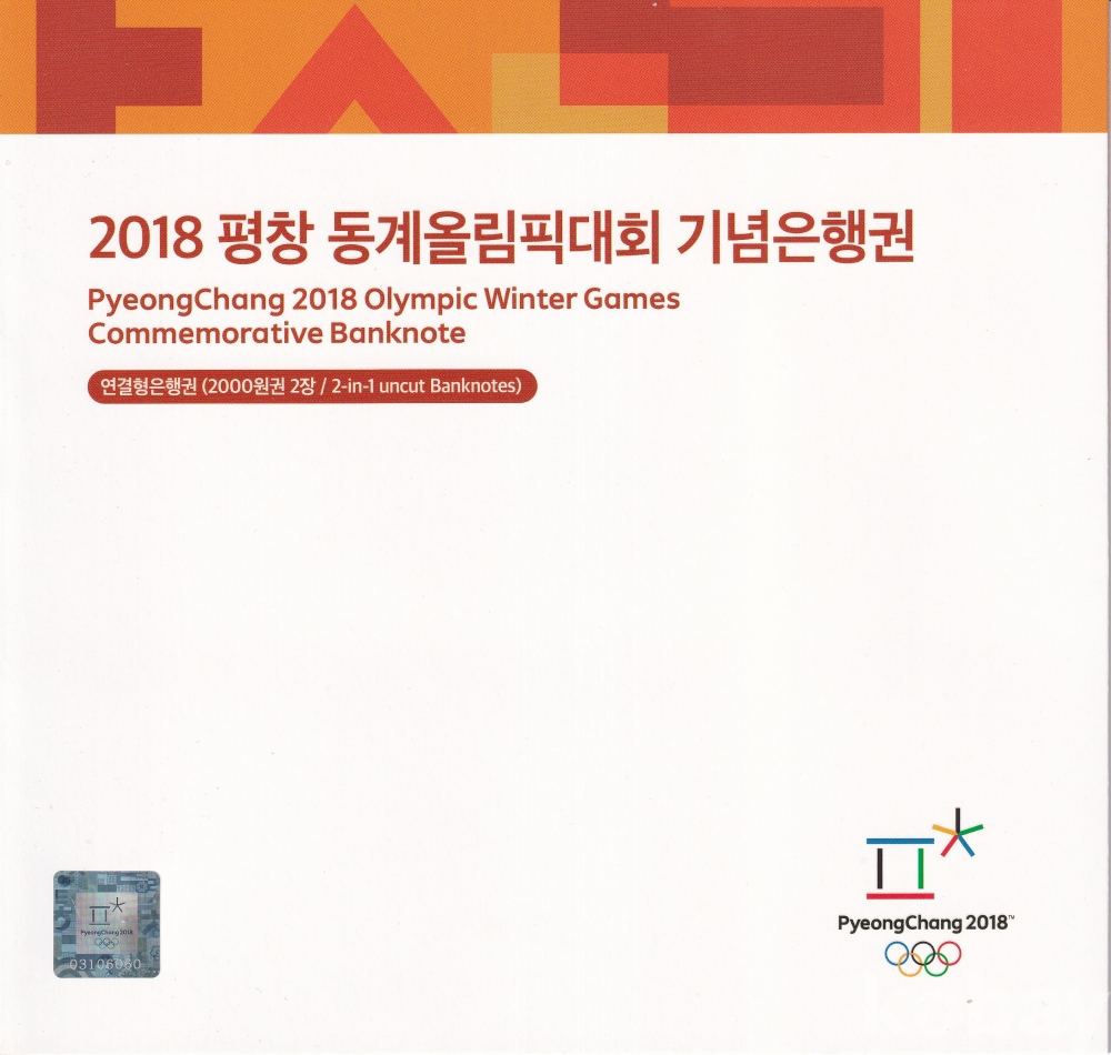 평창올림픽 기념 지폐 AAA, AAB권으로 발행하였으며,