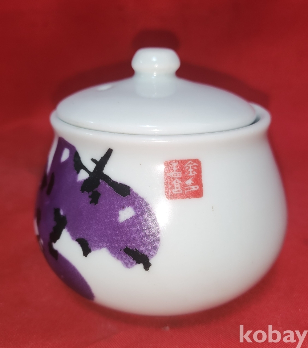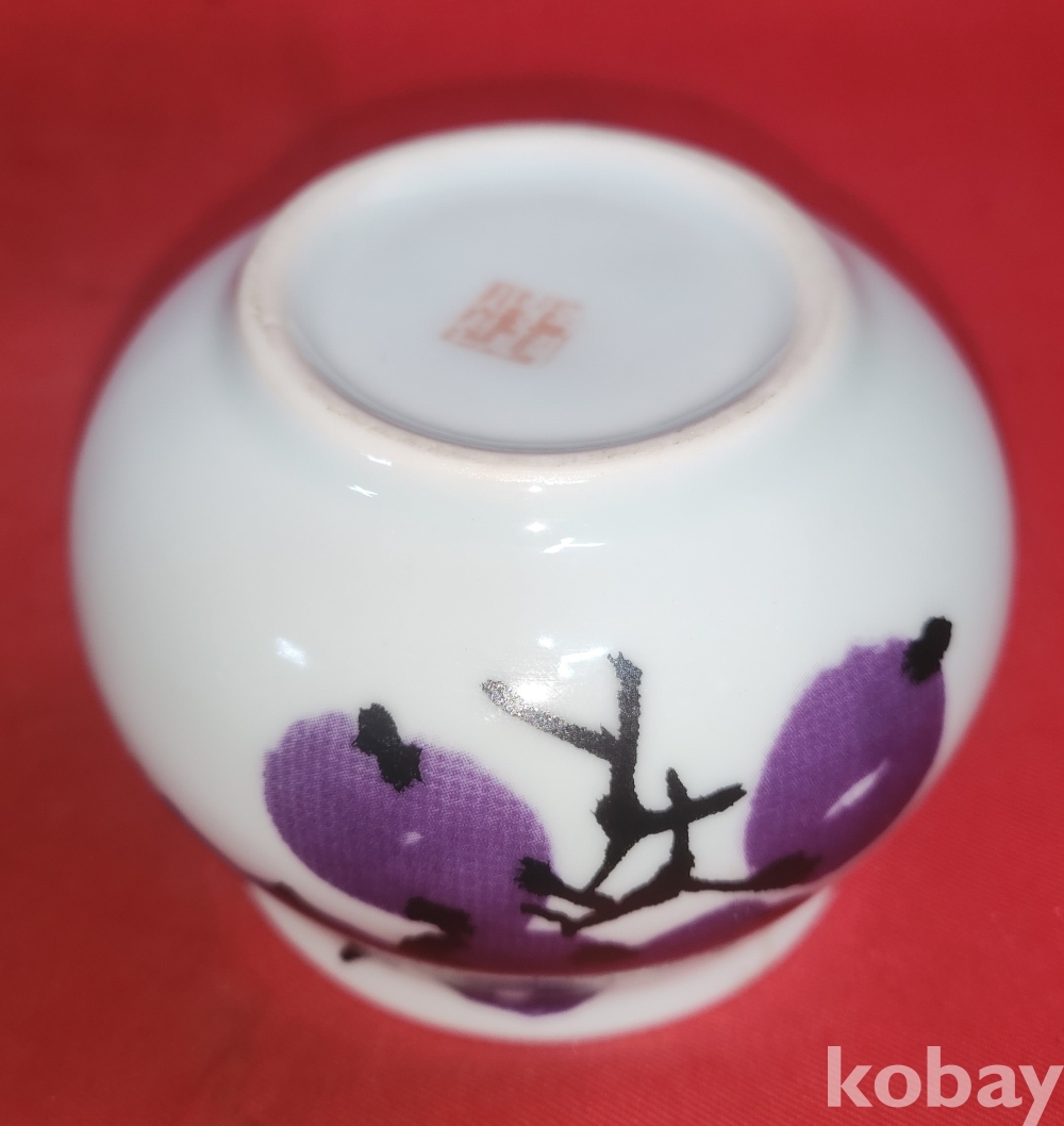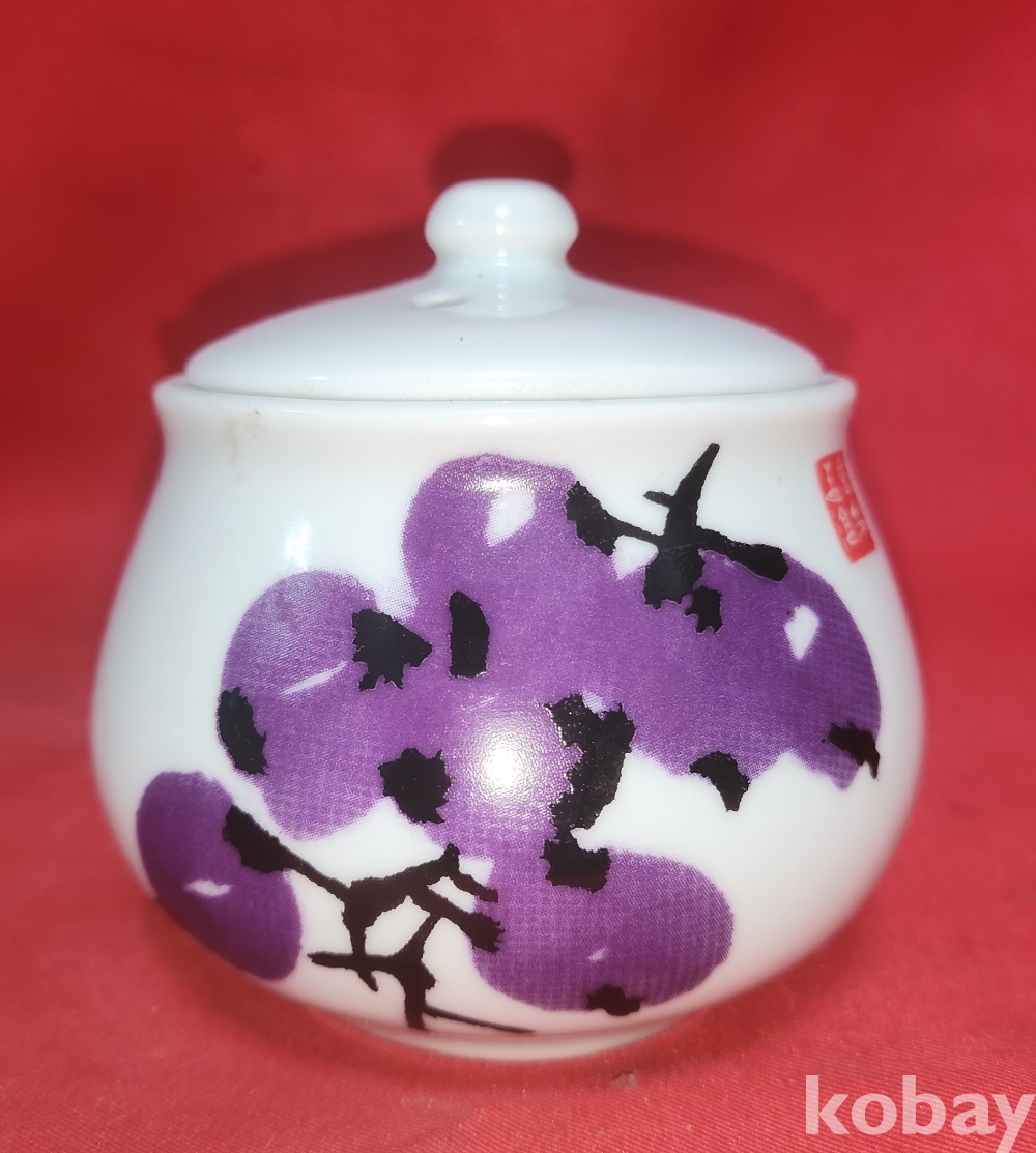작가의 수결이 보이는 백자 체리문양 유개호입니다,