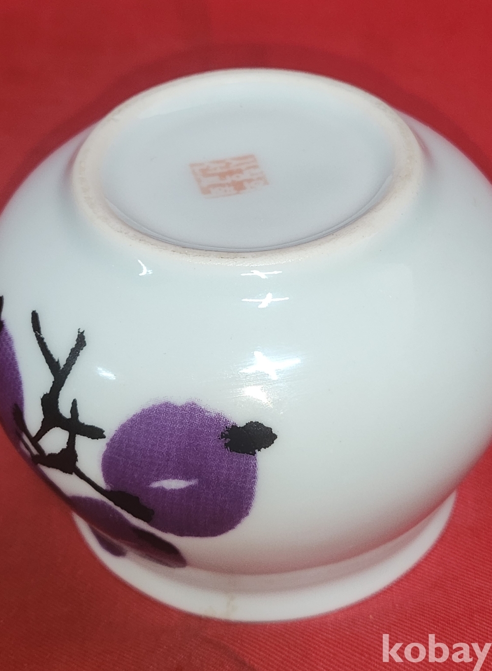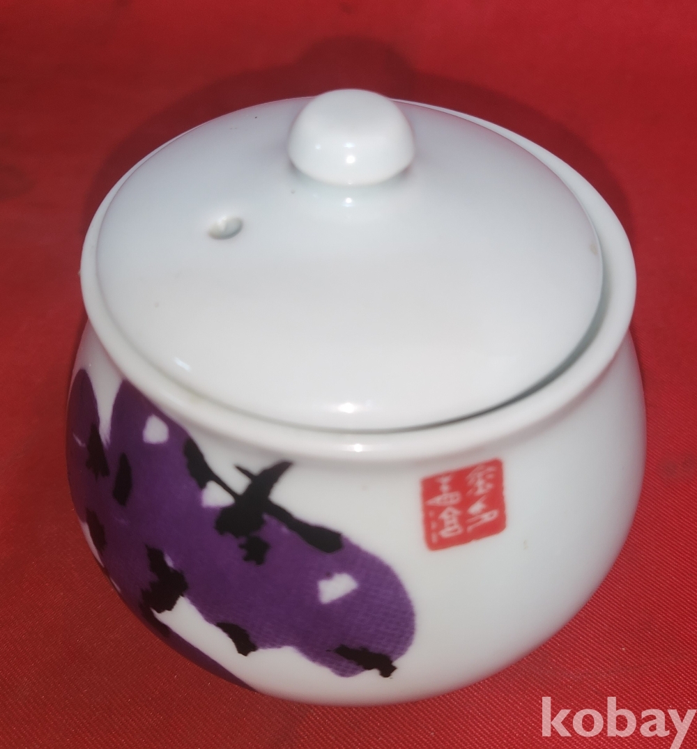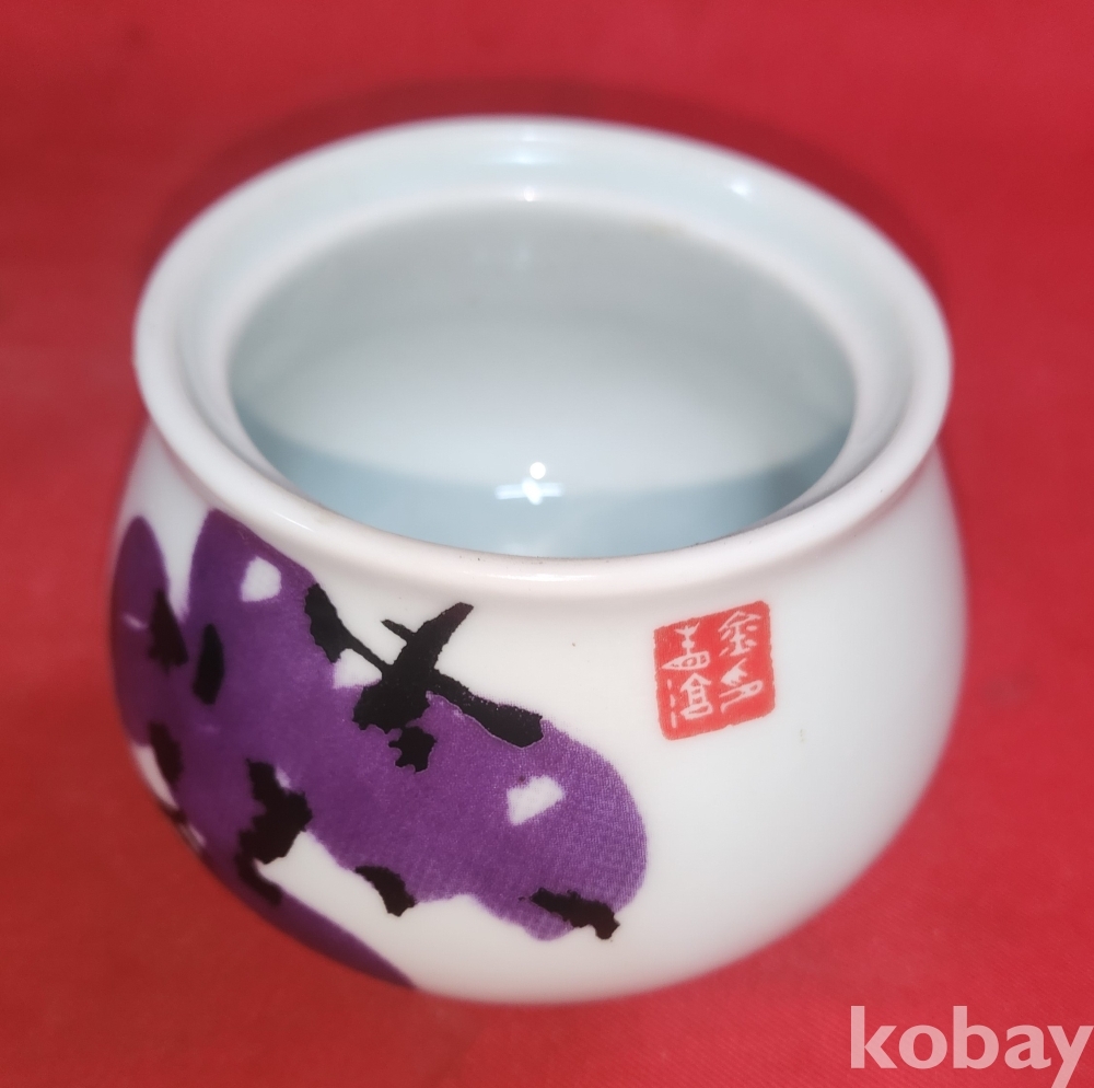 작가의 수결이 보이는 백자 체리문양 유개호입니다,