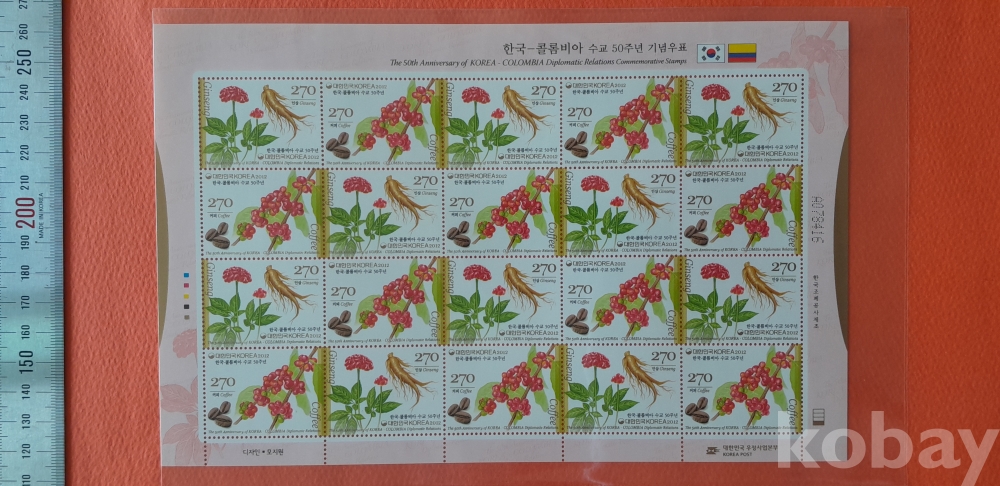 2012 한국-콜롬비아 수교 50주년 기념 270원 18매 전지 입니다.
