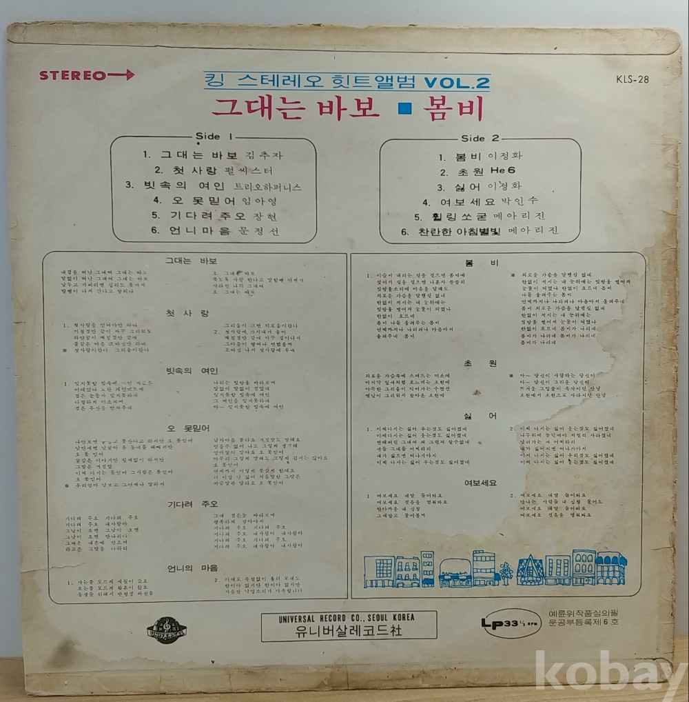 킹스테레오 힛트앨범 VOL.2 - 김추자 / 이정하 (그대는 바보 / 봄비) 1971년 유니버샬레코드 초반