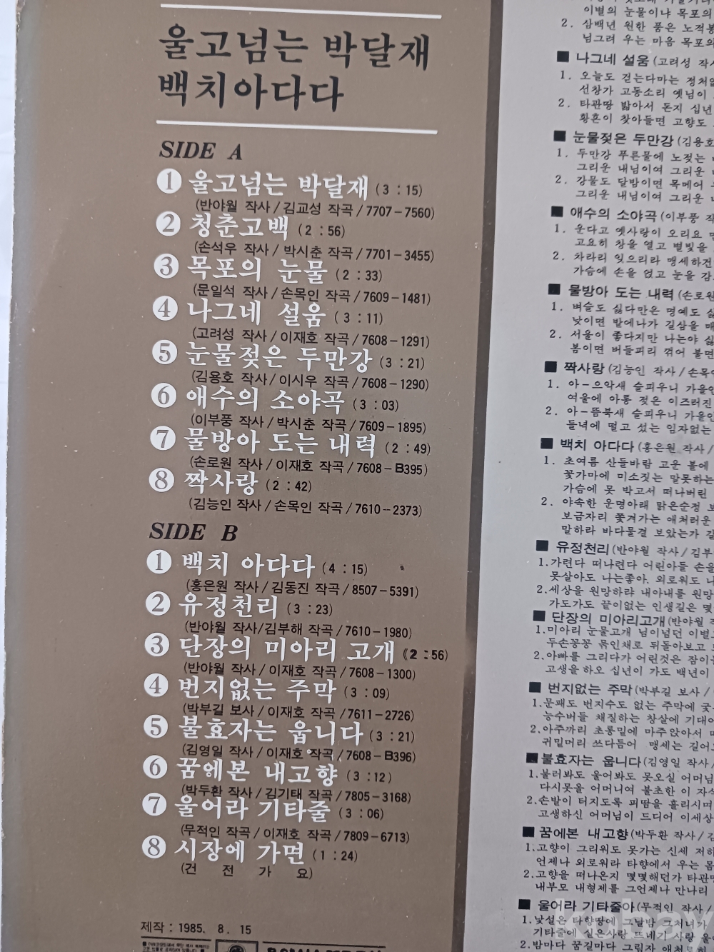 | 제조국 | 한국 | 발매연도 | 1985 |