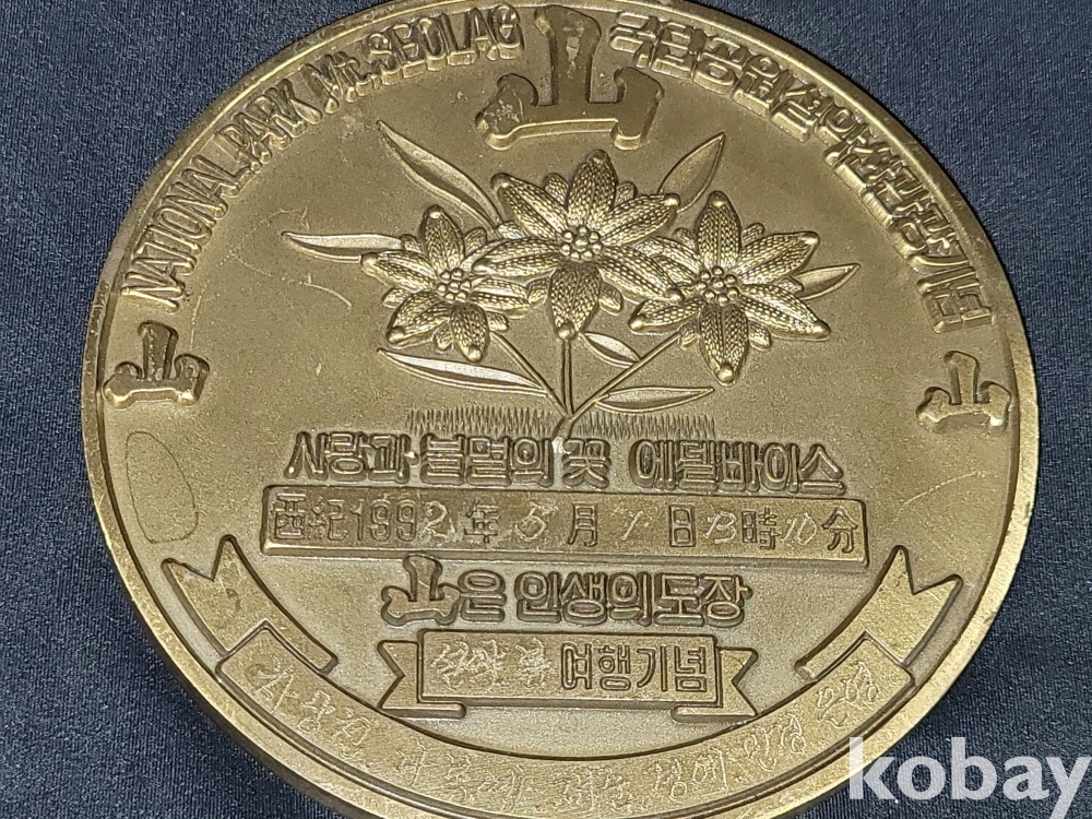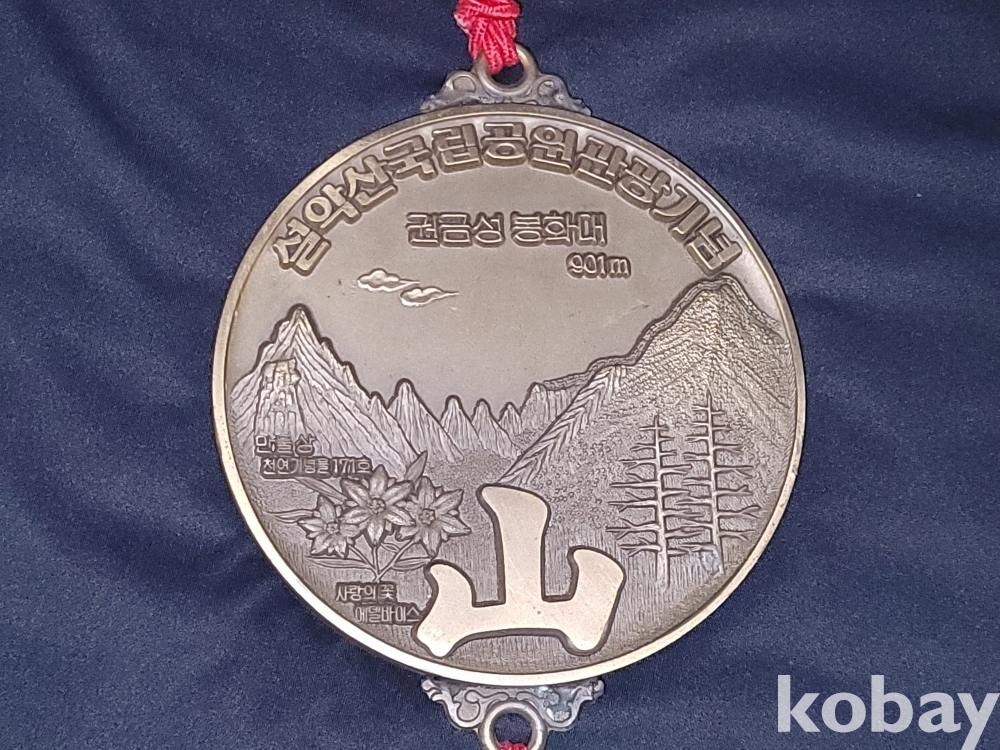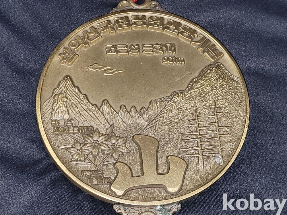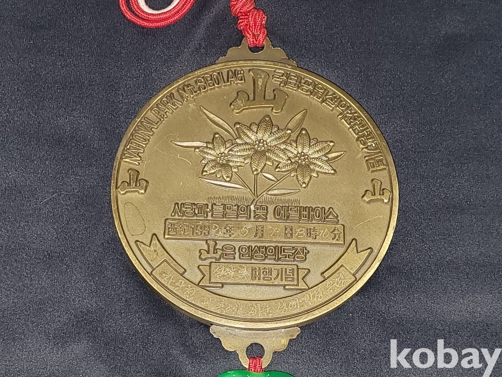 빈티지 꽤 묵직한 1992년 설악산국립공원관광기념 동메달 장식입니다.