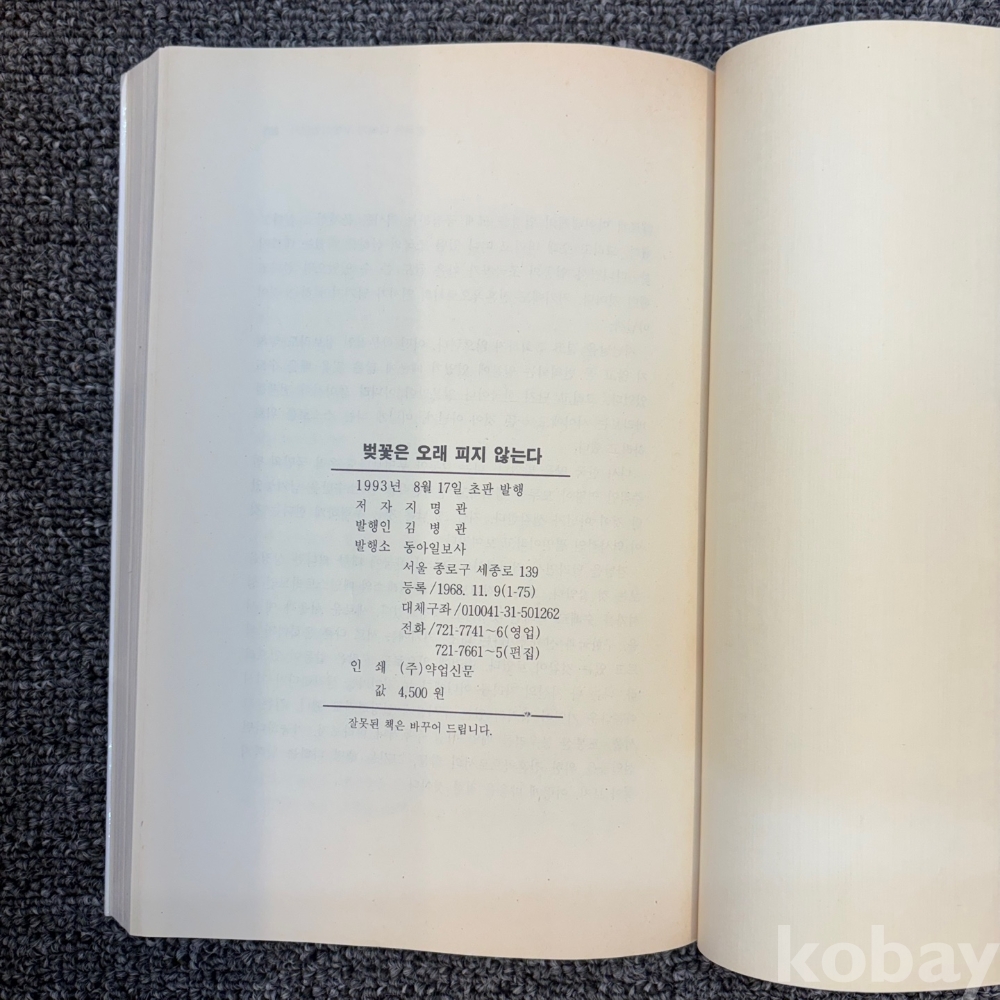 [일본현대사, 한일관계, 일본론] 지명관, <벚꽃은 오래피지 않는다>, 동아일보사 출판사, 1993년, p. 289, 중급(사진참조)