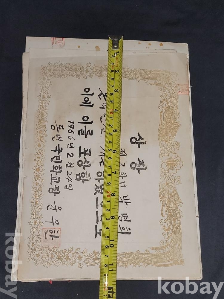 빈티지 세월 감이 느껴지는 희귀한 1966년 동면국민학교 개근상, 1969년 서울 금호국민학교 졸업장, 1975년 통장 위촉장, 1975년 반장 위촉장