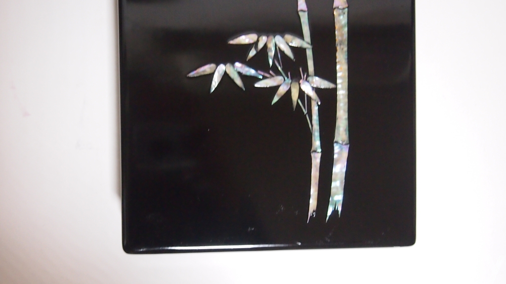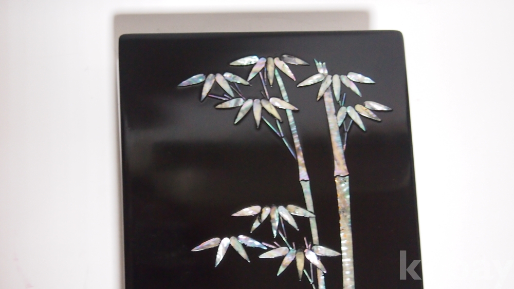 자개는 현재 진주패·야광패·멕시코패·홍패 등 수입품이 많아서 주름질이 한층 다채로워진 편인데, 오히려 나전이 안고 있는 과제는 자개라는 재료의 문제보다도 목물(木物)에서 문양 장식에 이르는 의장상의 안목에 있으며, 또 좋은 칠을 정제하여 자급하는 문제 등이라 할 수 있습니다.